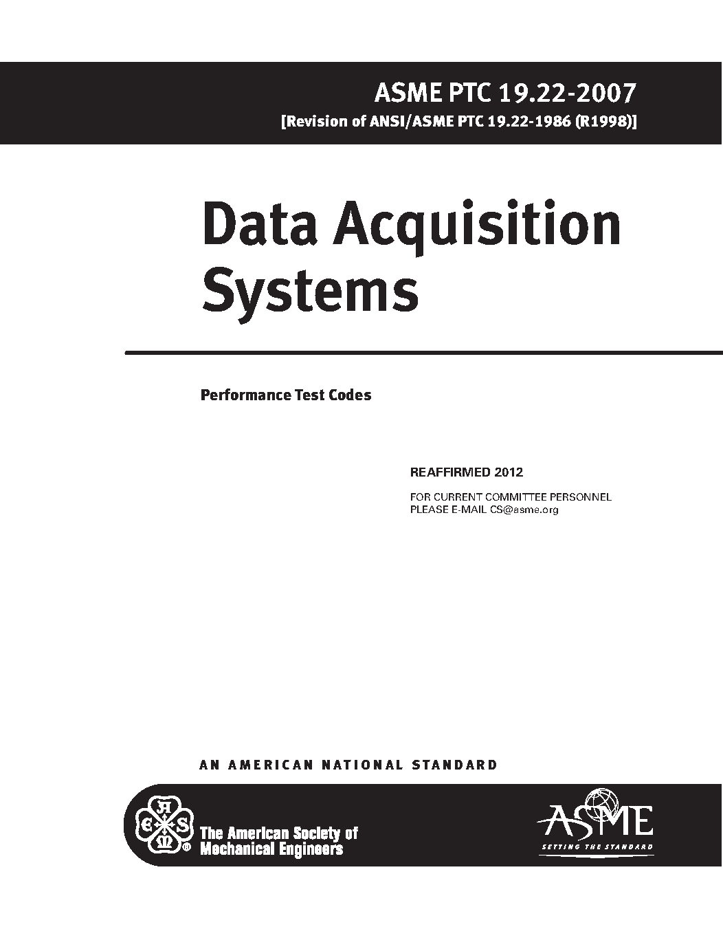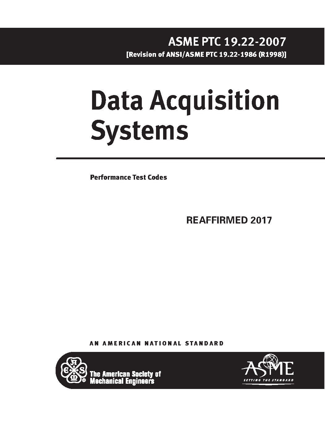 The scope of this Code includes signal conditioning, signal multiplexing, analog-to-digital conversion, and data processing. This Code addresses stand-alone data acquisition systems, typified by a sensor with an integral digital display, data acquisition systems that link multiple sensors to a common digital processor tied to a computer or printer, and systems that link multiple digital processes to one or more stand-alone or net-worked computers. This Code incorporates instrumentation practices covered by other Instruments and Apparatus Supplements (PTC 19 Series) as well as by the equipment Performance Test Codes. It also provides a means to determine the uncertainty associated with the data acquisition system, and its impact on the overall uncertainty of the performance test. The Code does not directly address specific sensors or instruments used for ASME Performance Testing. Those are address in other ASME Performance Test Codes.