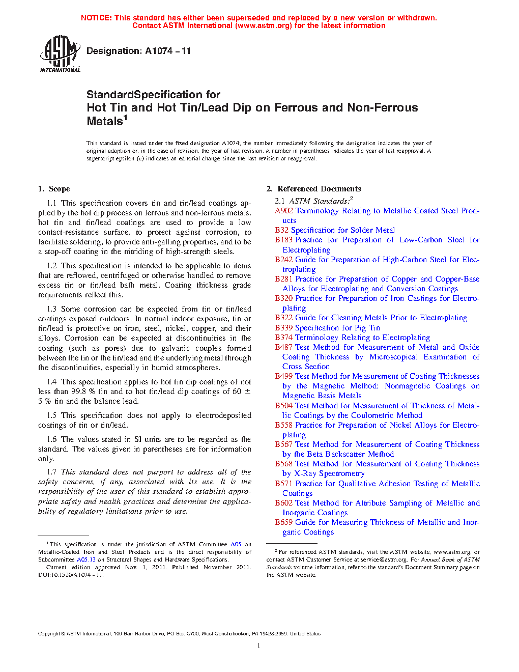 1.5 This specification does not apply to electrodeposited coatings of tin or tin/lead.