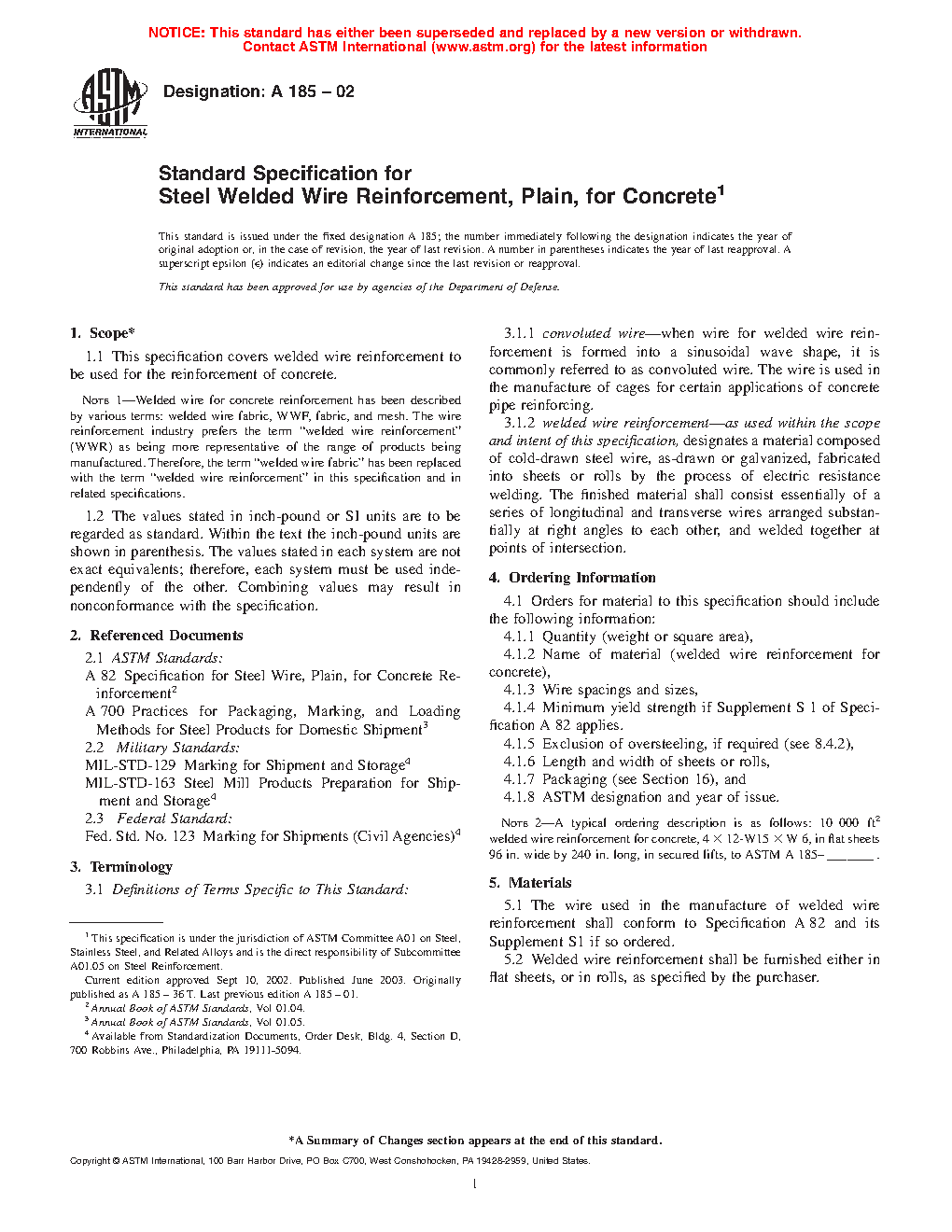Note 1—Welded wire for concrete reinforcement has been described by various terms: welded wire fabric, WWF, fabric, and mesh. The wire reinforcement industry prefers the term "welded wire reinforcement" (WWR) as being more representative of the range of products being manufactured. Therefore, the term "welded wire fabric" has been replaced with the term "welded wire reinforcement" in this specification and in related specifications.