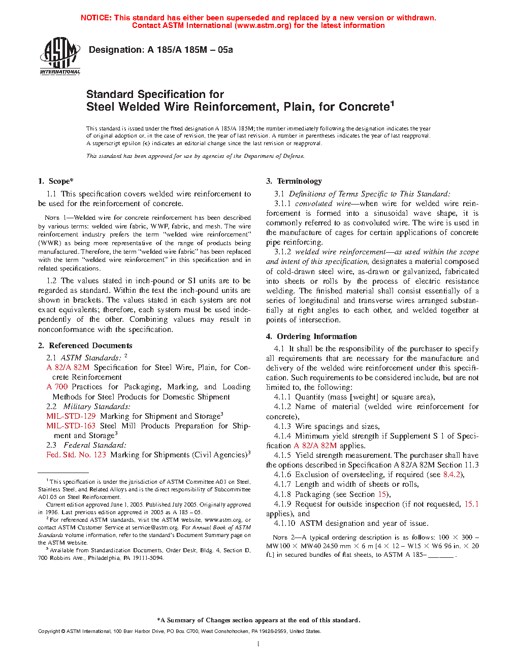 Note 1—Welded wire for concrete reinforcement has been described by various terms: welded wire fabric, WWF, fabric, and mesh. The wire reinforcement industry prefers the term "welded wire reinforcement" (WWR) as being more representative of the range of products being manufactured. Therefore, the term "welded wire fabric" has been replaced with the term "welded wire reinforcement" in this specification and in related specifications.