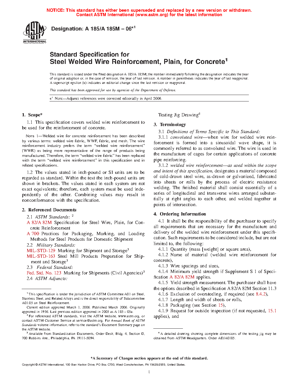 1.1 This specification covers welded wire reinforcement to be used for the reinforcement of concrete.
