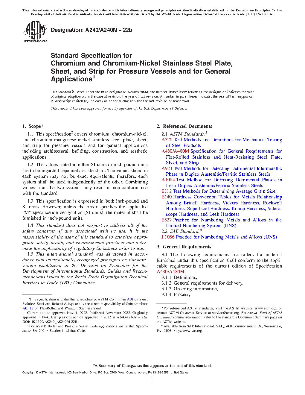 1.1 This specification2 covers chromium, chromium-nickel, and chromium-manganese-nickel stainless steel plate, sheet, and strip for pressure vessels and for general applications including architectural, building, construction, and aesthetic applications.