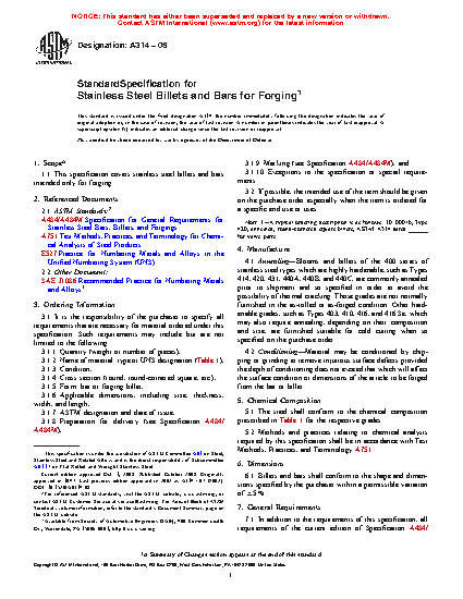 1.1 This specification covers stainless steel billets and bars intended only for forging.