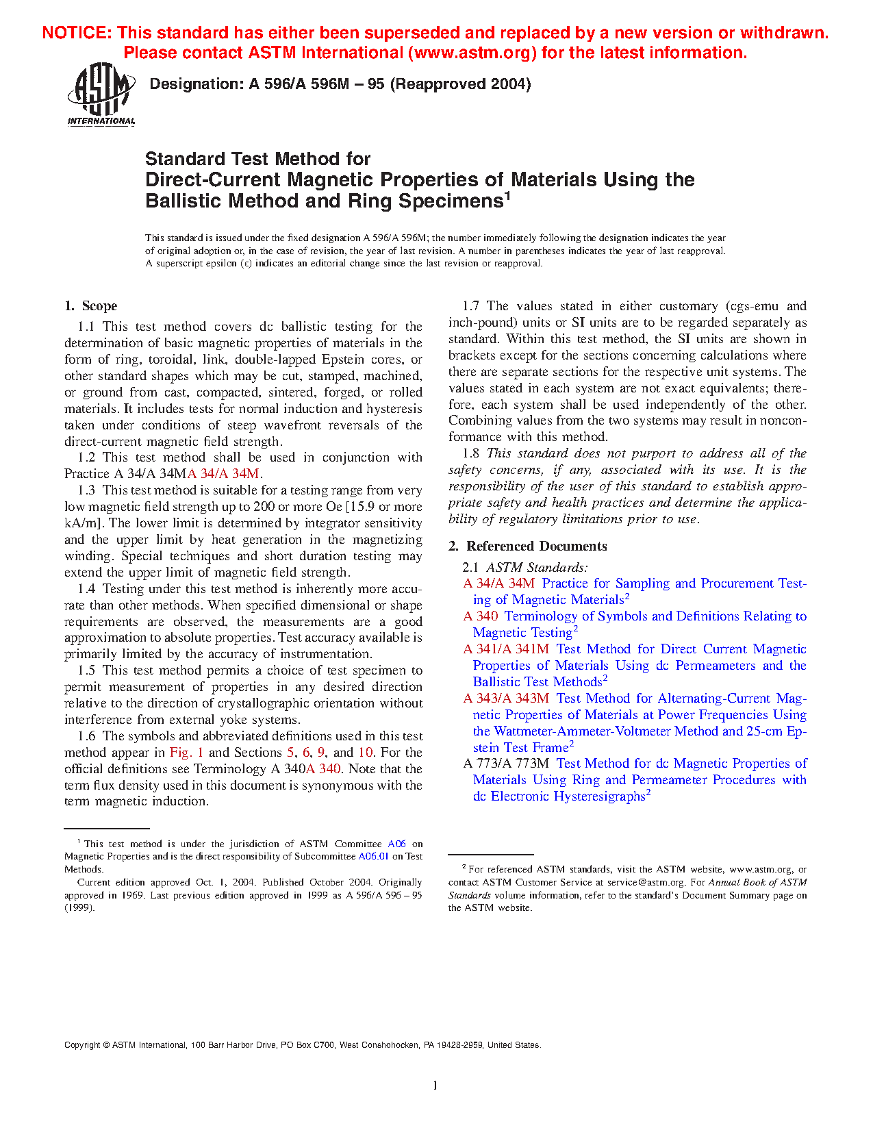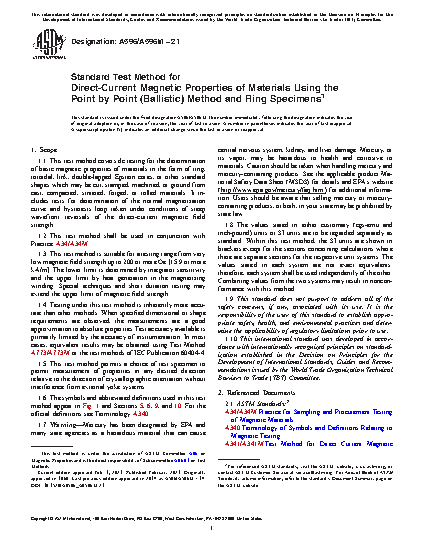 3.1 Test methods using suitable ring-type specimens4 are the preferred methods of determining the basic magnetic properties of a material caused by the absence of demagnetizing effects and are well suited for specification acceptance, service evaluation, and research and development.