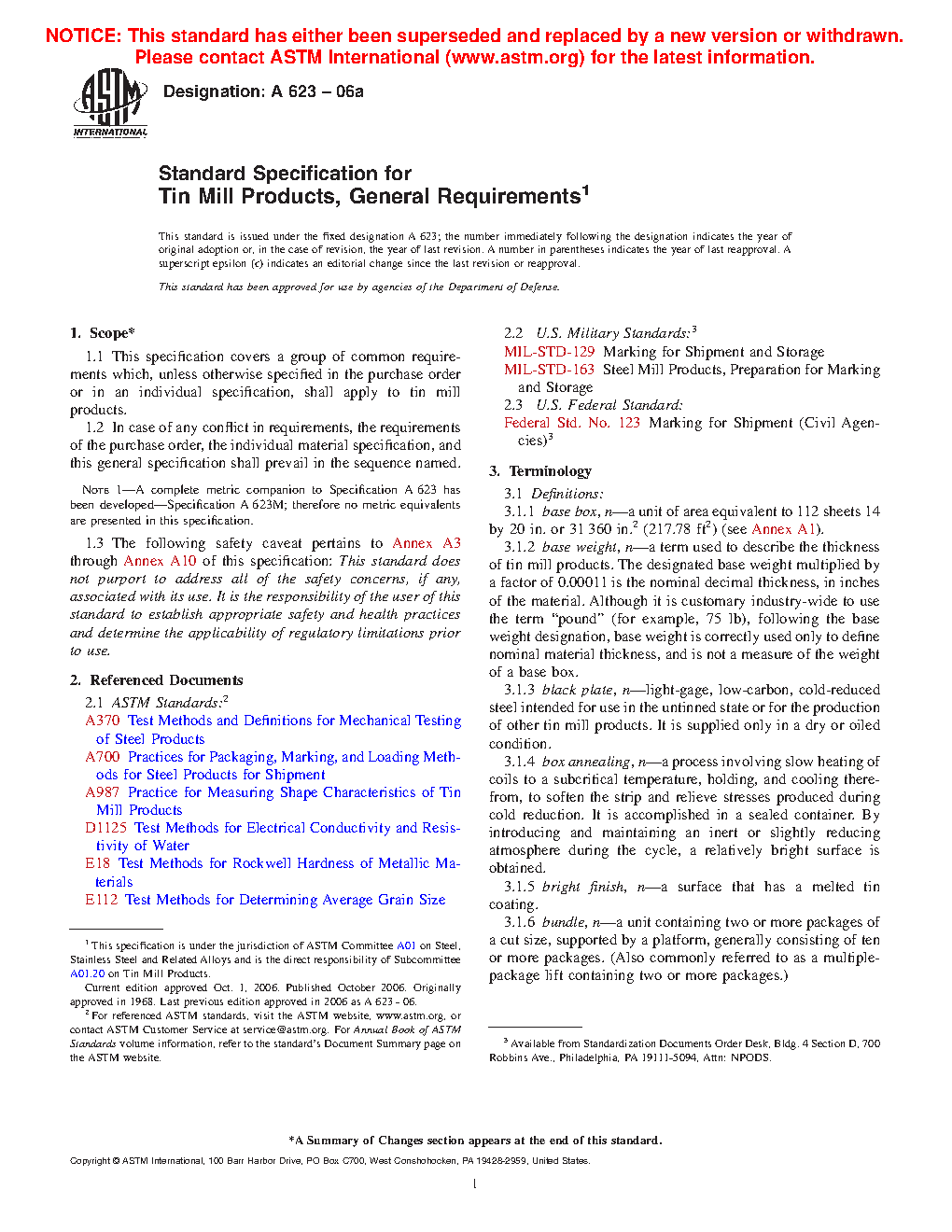1.1 This specification covers a group of common requirements which, unless otherwise specified in the purchase order or in an individual specification, shall apply to tin mill products.