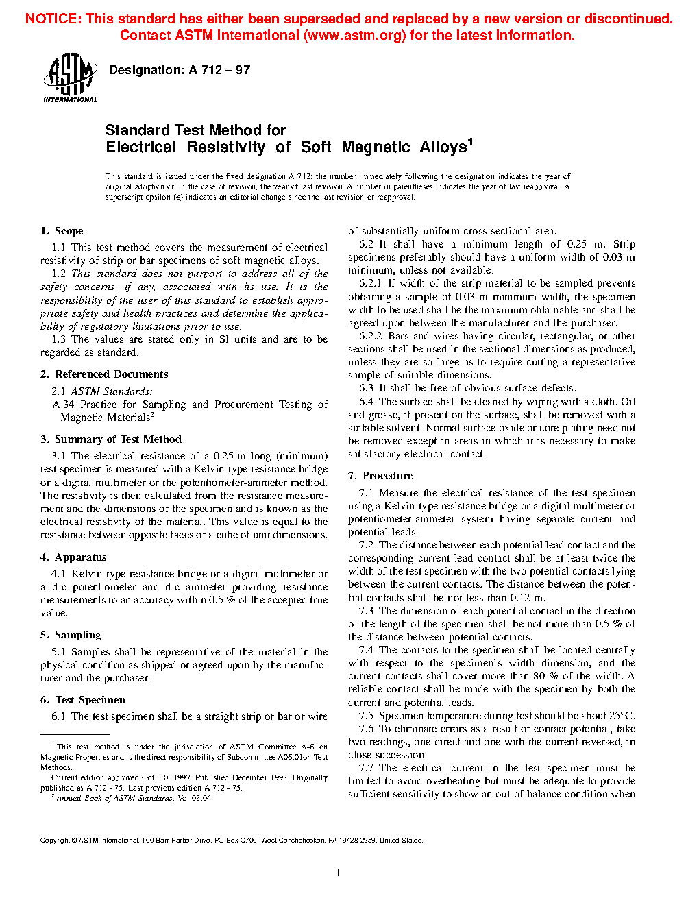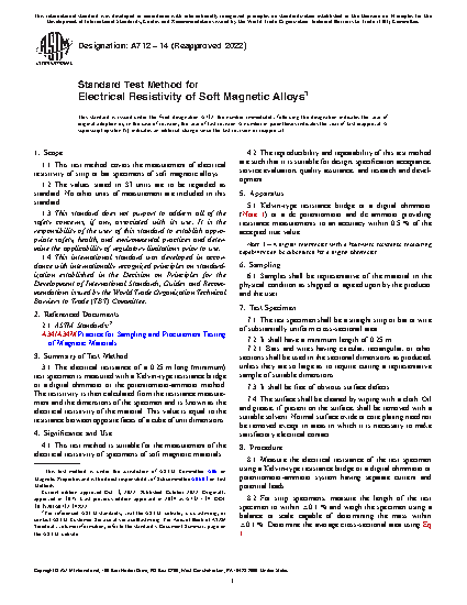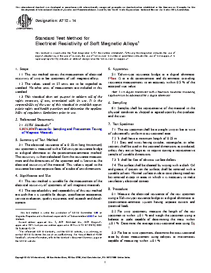 4.1 This test method is suitable for the measurement of the electrical resistivity of specimens of soft magnetic materials.