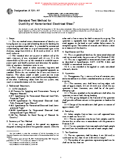 1.1 This test method covers determination of ductility utilizing Epstein test strips and a bending device for bending the strip over a predetermined radius. It is intended for commercial silicon-bearing steel sheet or strip of nonoriented types in the thickness range from 0.010 to 0.031 in. [0.25 to 0.79 mm], inclusive.