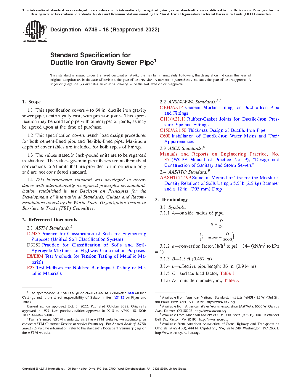1.1 This specification covers 4 to 64-in. ductile iron gravity sewer pipe centrifugally cast with push-on joints. This specification may be used for pipe with other types of joints, as may be agreed upon at the time of purchase.