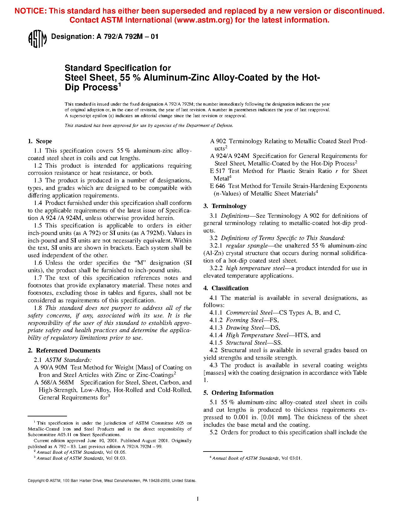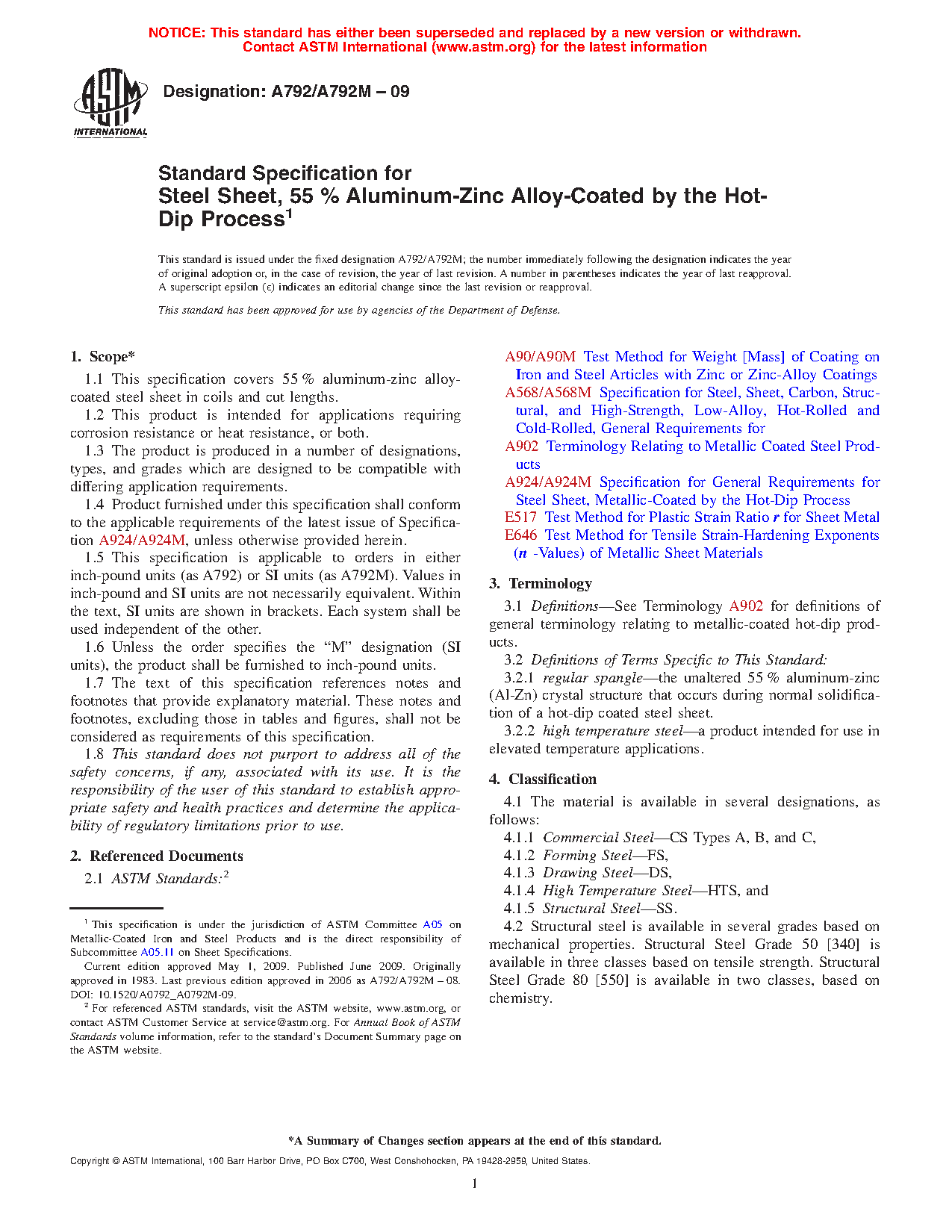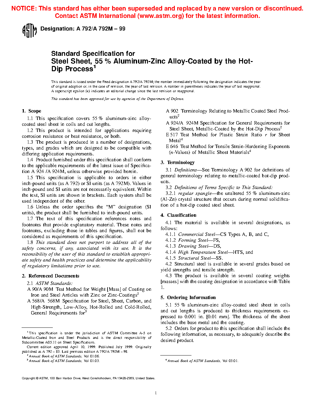 1.1 This specification covers 55 % aluminum-zinc alloy-coated steel sheet in coils and cut lengths.