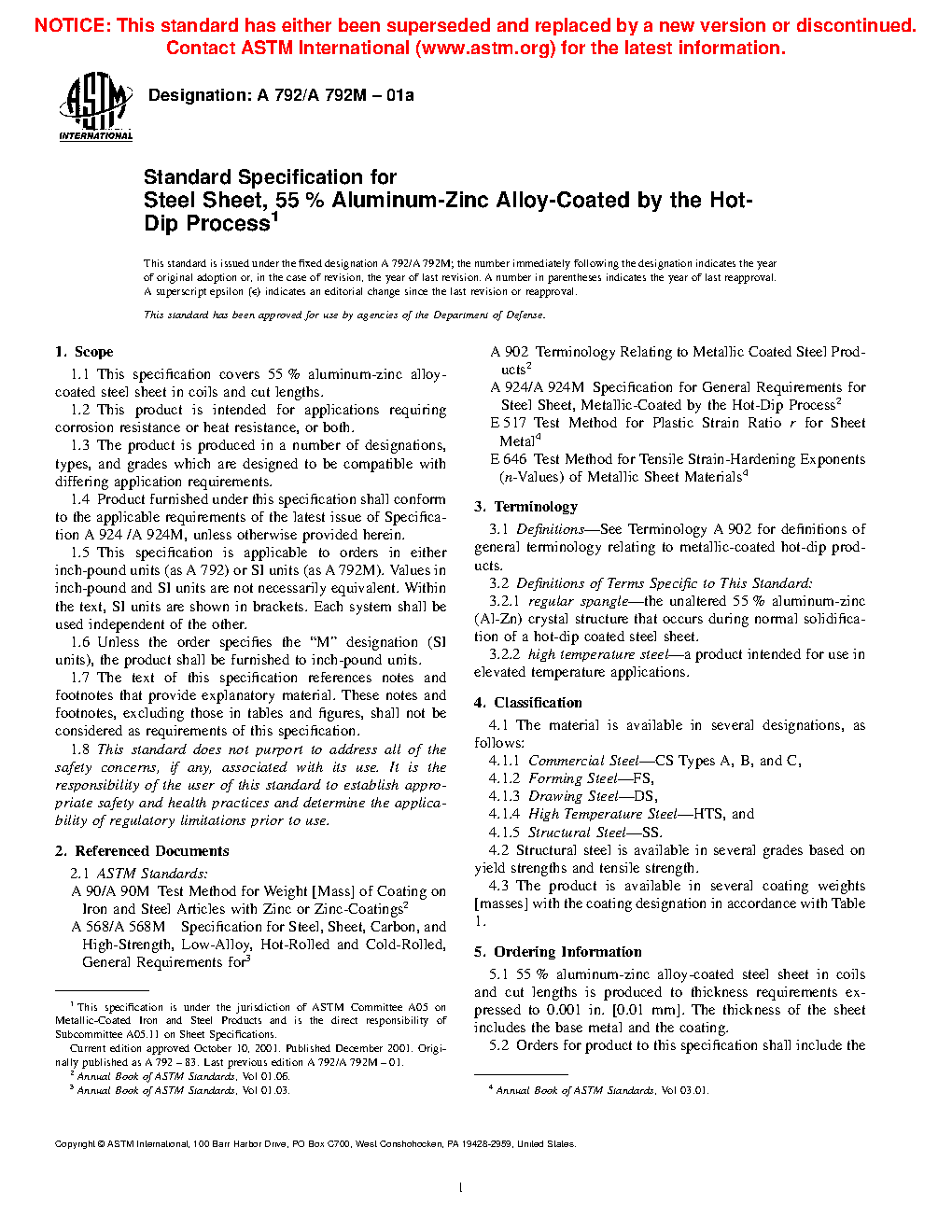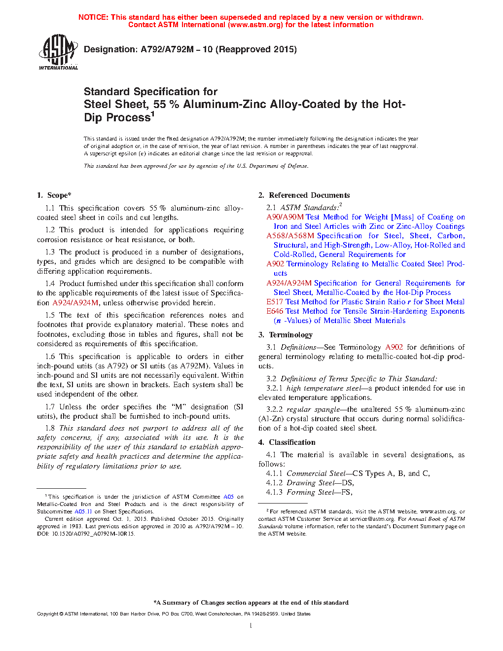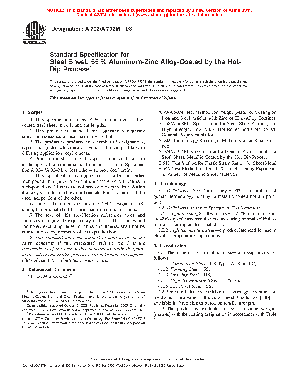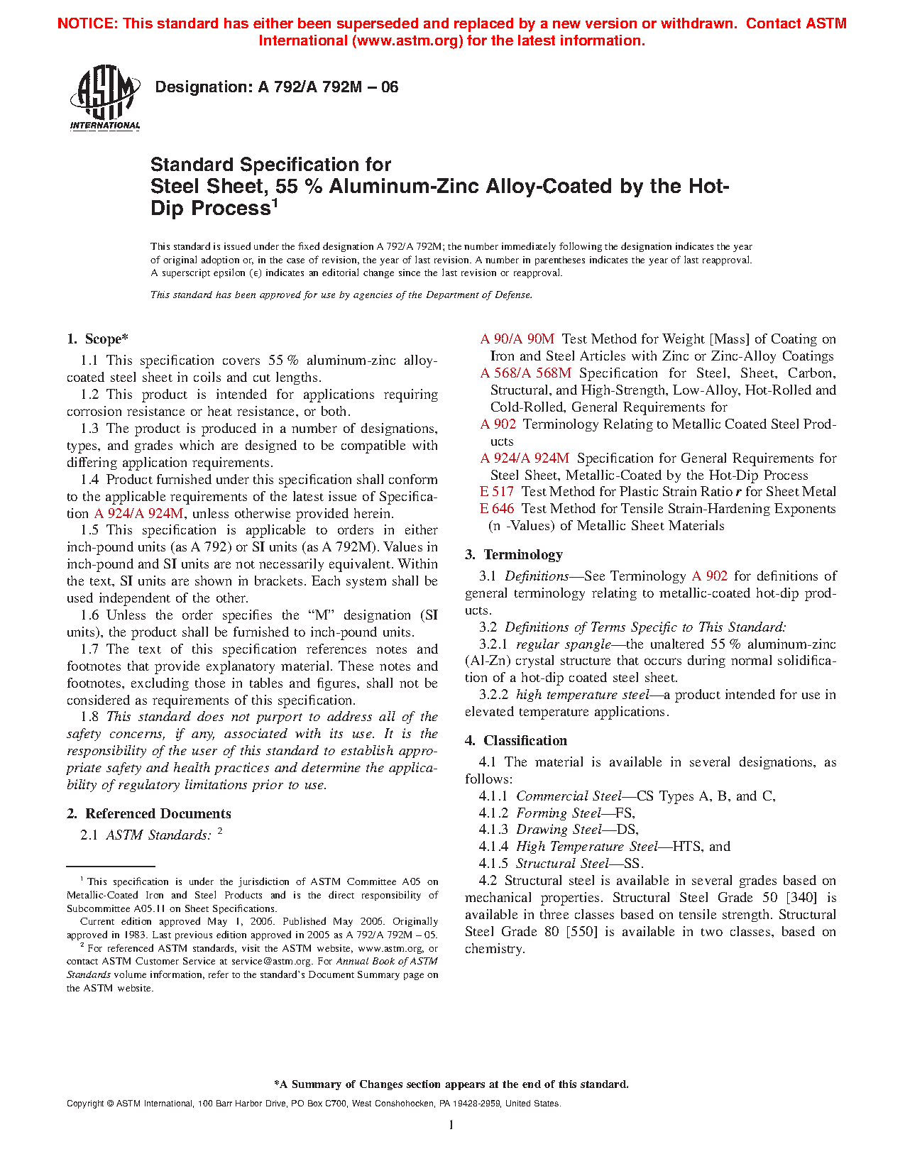1.1 This specification covers 55 % aluminum-zinc alloy-coated steel sheet in coils and cut lengths.