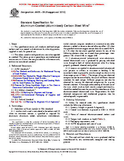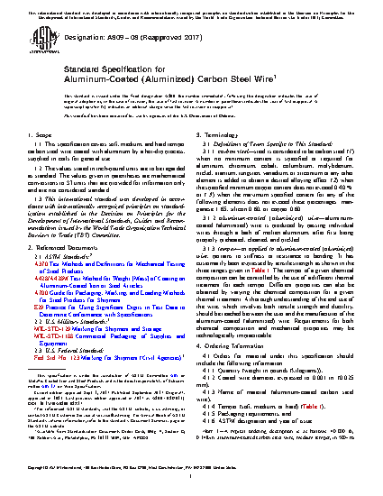 Standard Specification for Aluminum-Coated (Aluminized) Carbon Steel Wire