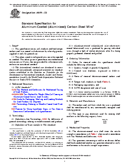 1.1 This specification covers soft, medium, and hard temper carbon steel wire coated with aluminum by a hot-dip process, supplied in coils for general use.
