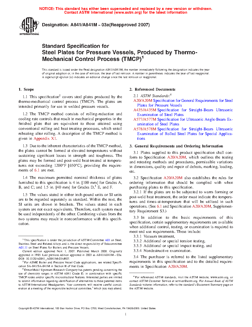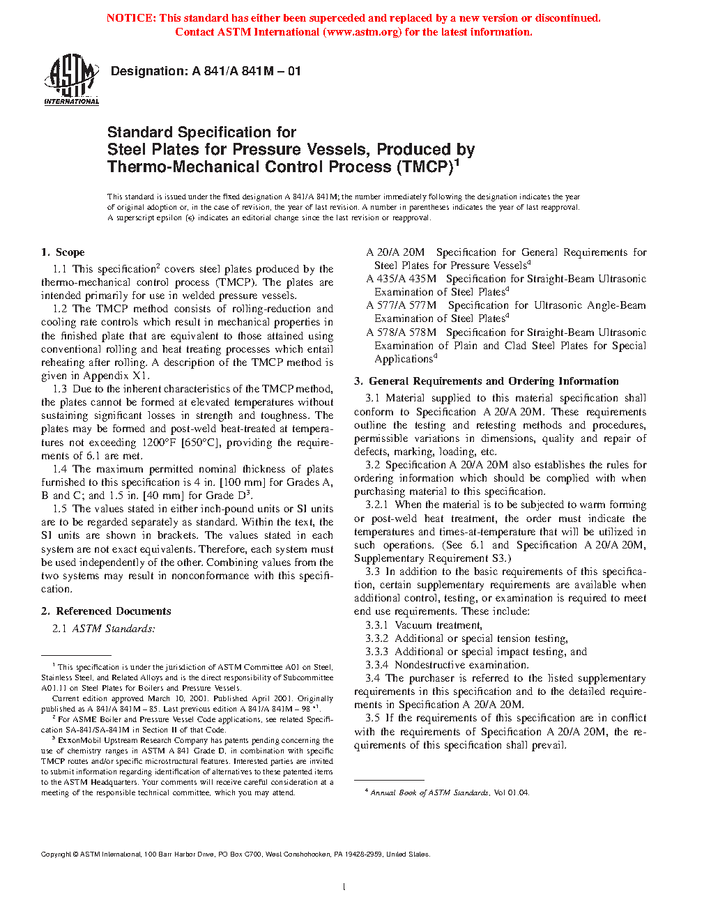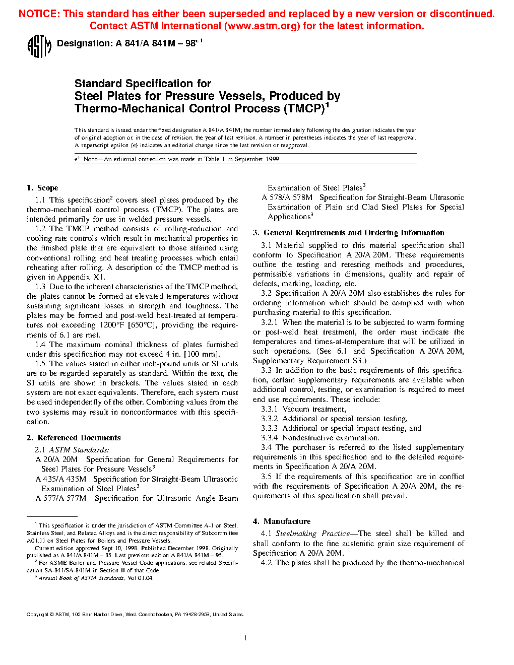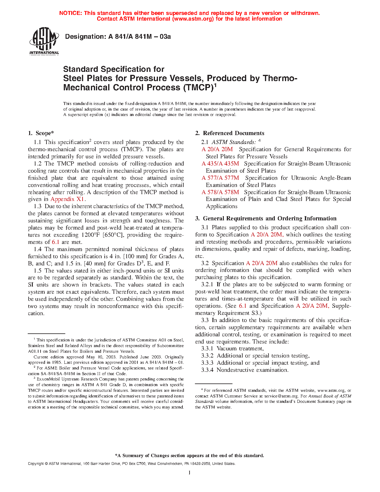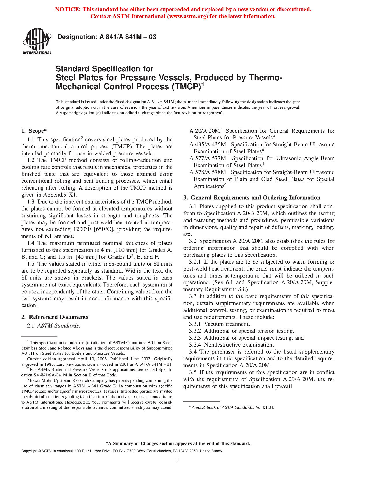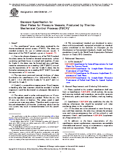 1.1 This specification2 covers steel plates produced by the thermo-mechanical control process (TMCP). The plates are intended primarily for use in welded pressure vessels. A description of the TMCP method is given in Appendix X1.