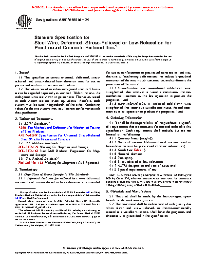 1.1 This specification covers indented, low-relaxation steel wire for use in prestressed concrete.