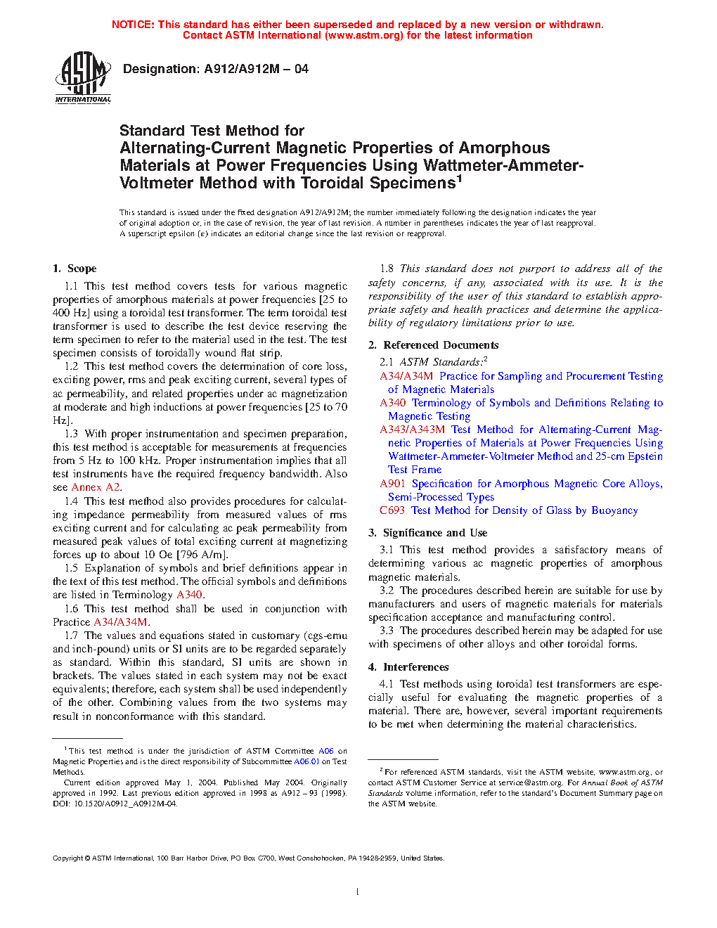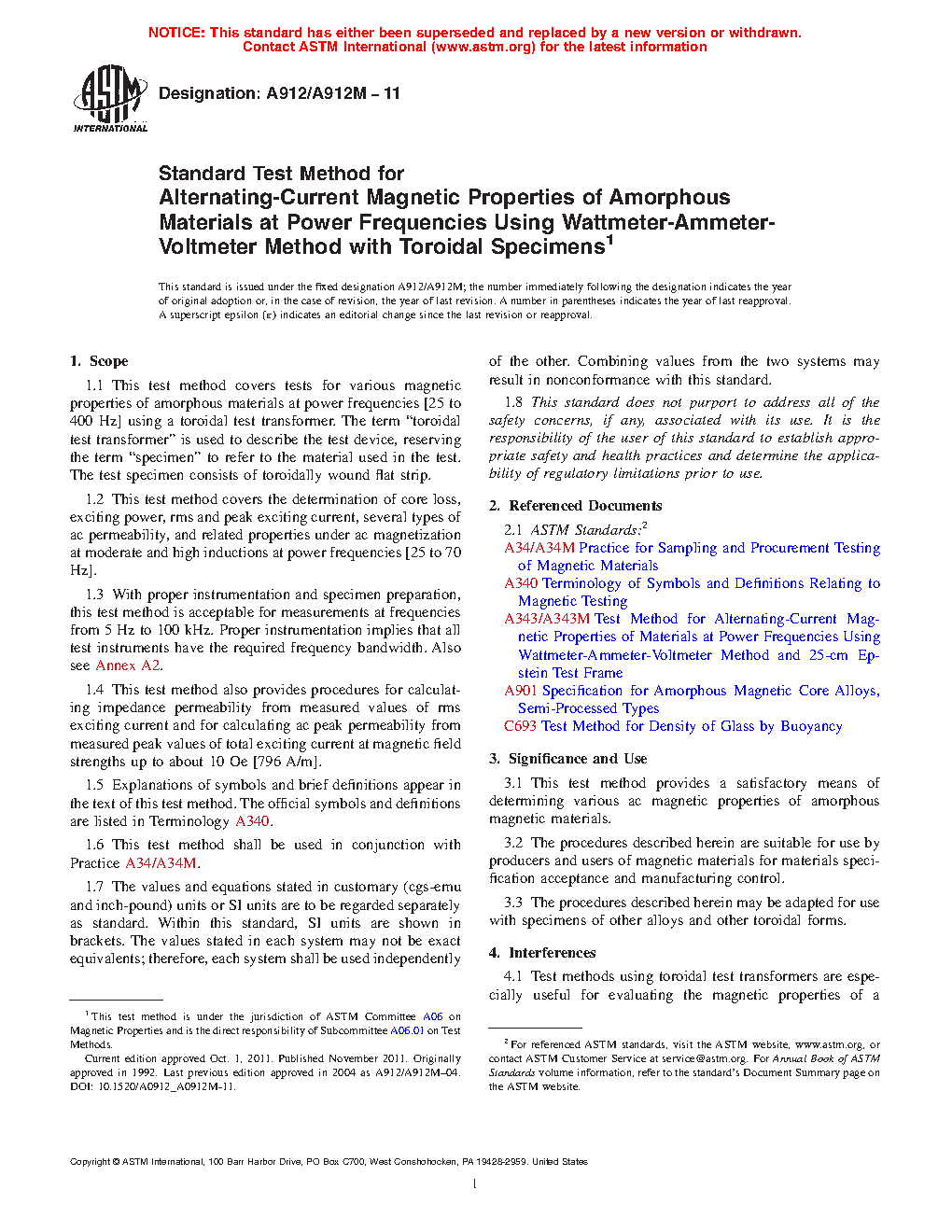 This test method provides a satisfactory means of determining various ac magnetic properties of amorphous magnetic materials.