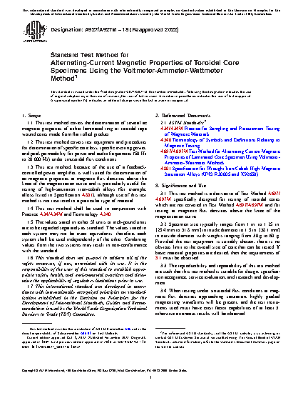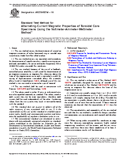 1.1 This test method covers the determination of several ac magnetic properties of either laminated ring or toroidal tape wound cores made from flat rolled product.