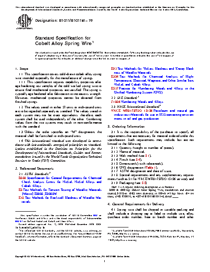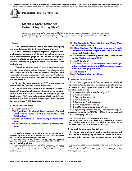 1.1 This specification covers cold-drawn cobalt alloy spring wire intended especially for the manufacture of springs.