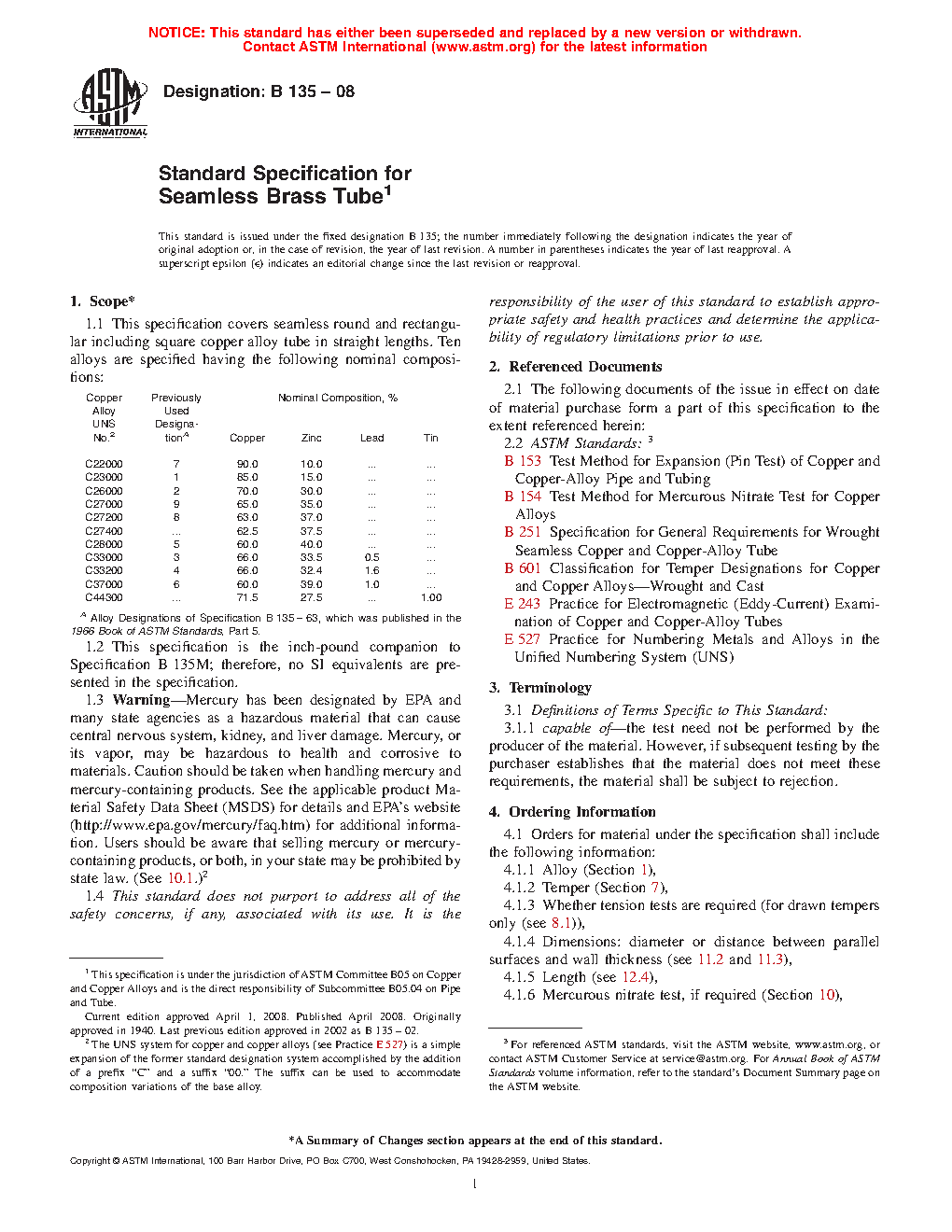 1.1 This specification covers seamless round and rectangular including square copper alloy tube in straight lengths. Ten alloys are specified having the following nominal compositions: