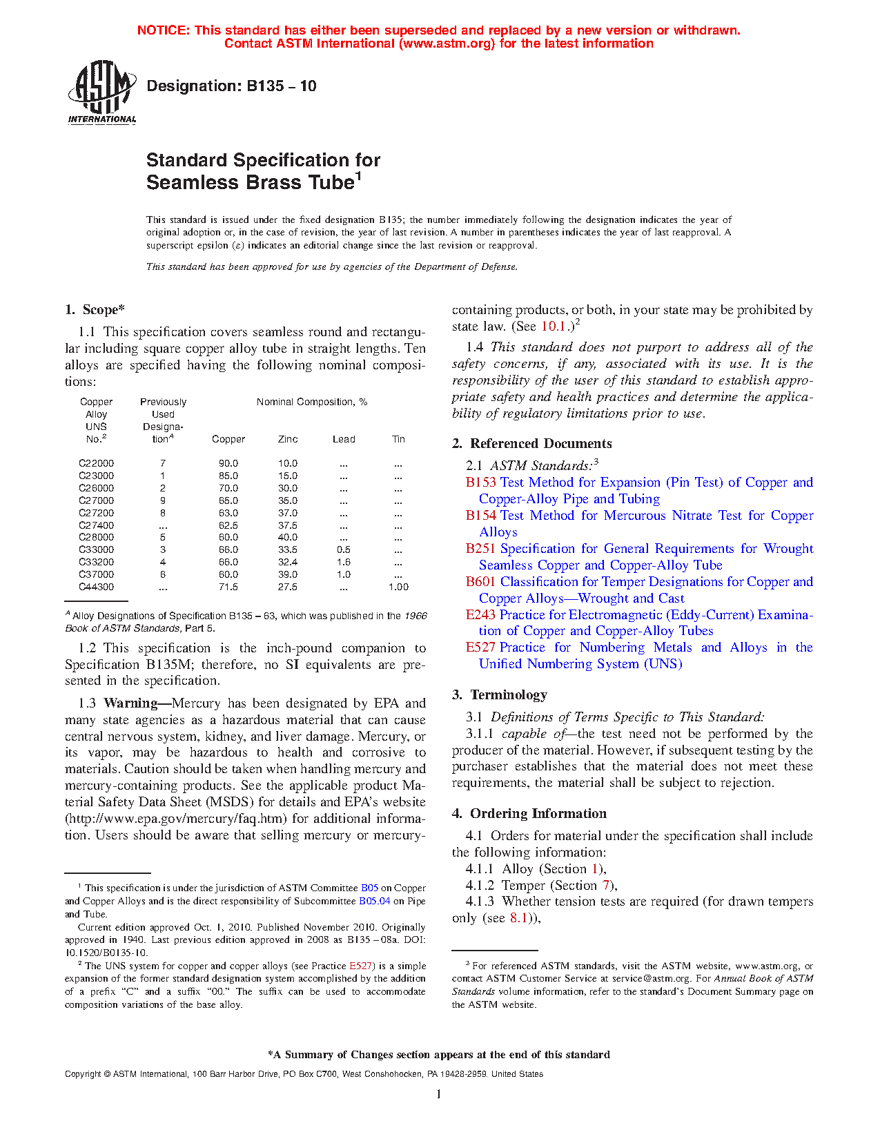 Note 1—A complete metric companion to Specification B135 has been developed-B135M; therefore, no metric equivalents are presented in this specification.