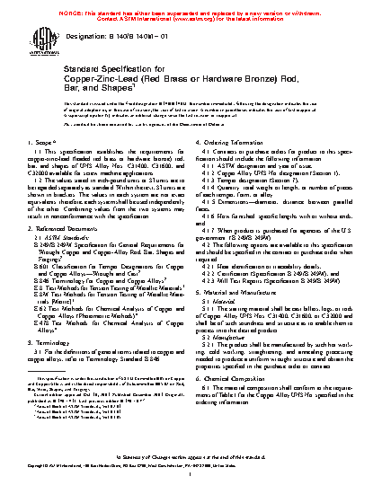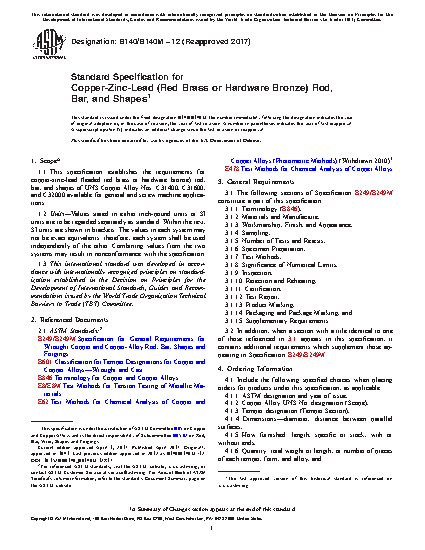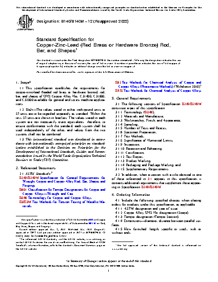 Standard Specification for Copper-Zinc-Lead (Red Brass or Hardware Bronze) Rod, Bar, and Shapes