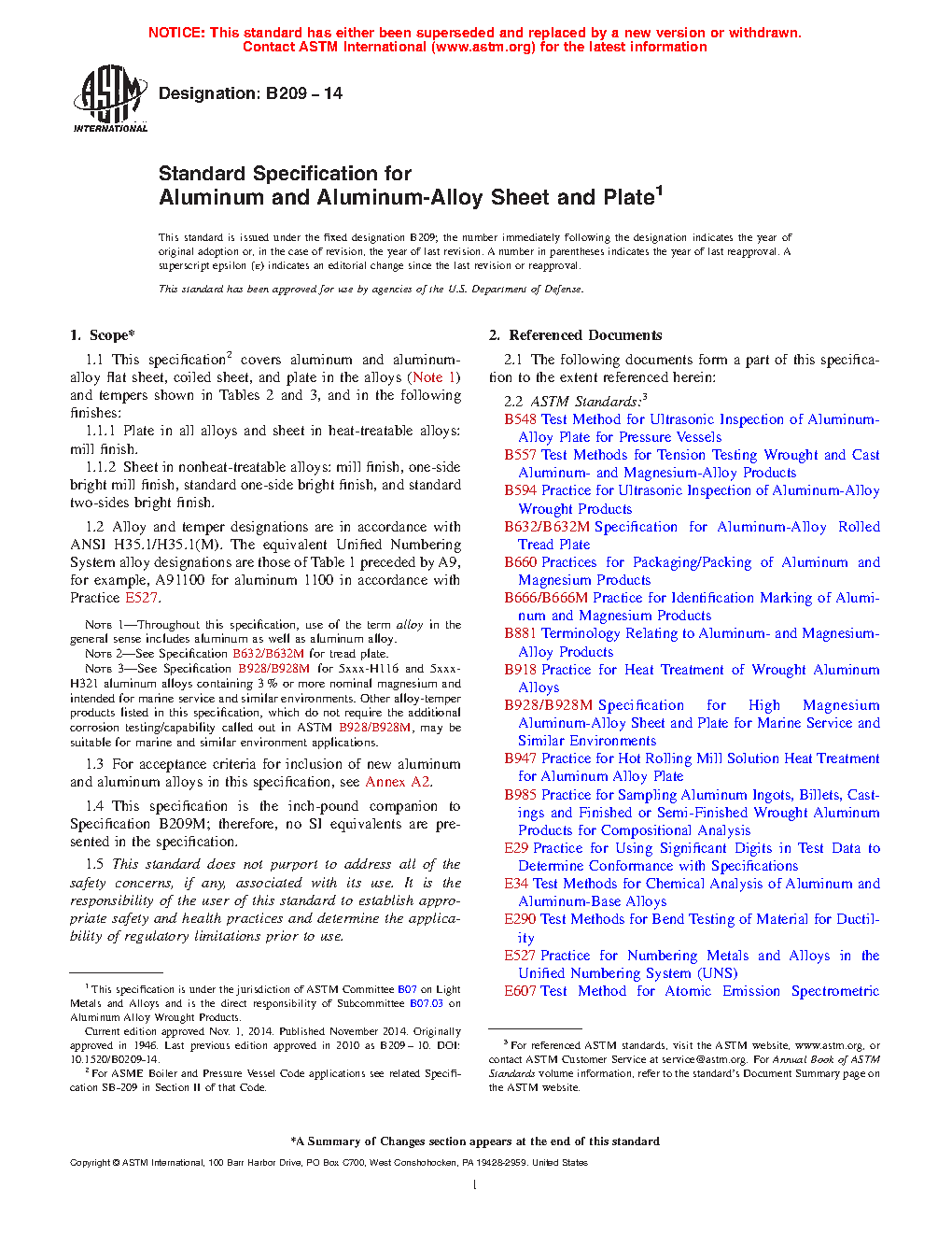 1.1 This specification covers aluminum and aluminum-alloy flat sheet, coiled sheet, and plate, in the alloys (Note 1) and tempers shown in Tables 2 and 3, and in the following finishes: