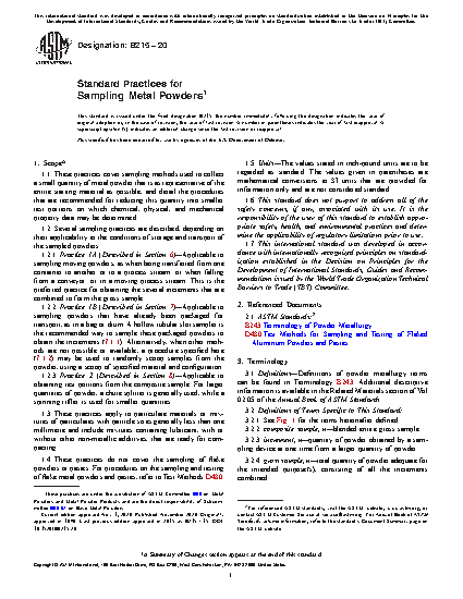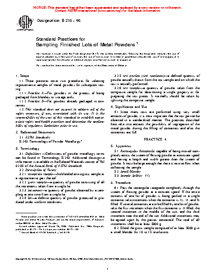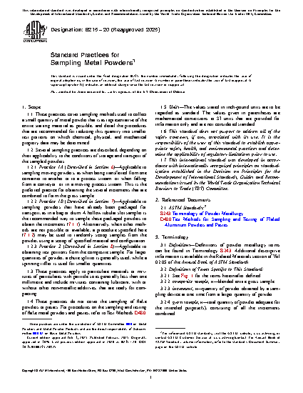 1.1 These practices describe two procedures for obtaining samples of metal powders for subsequent testing: