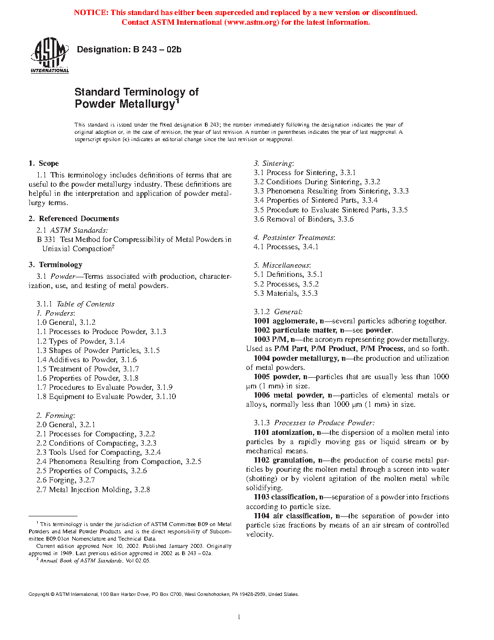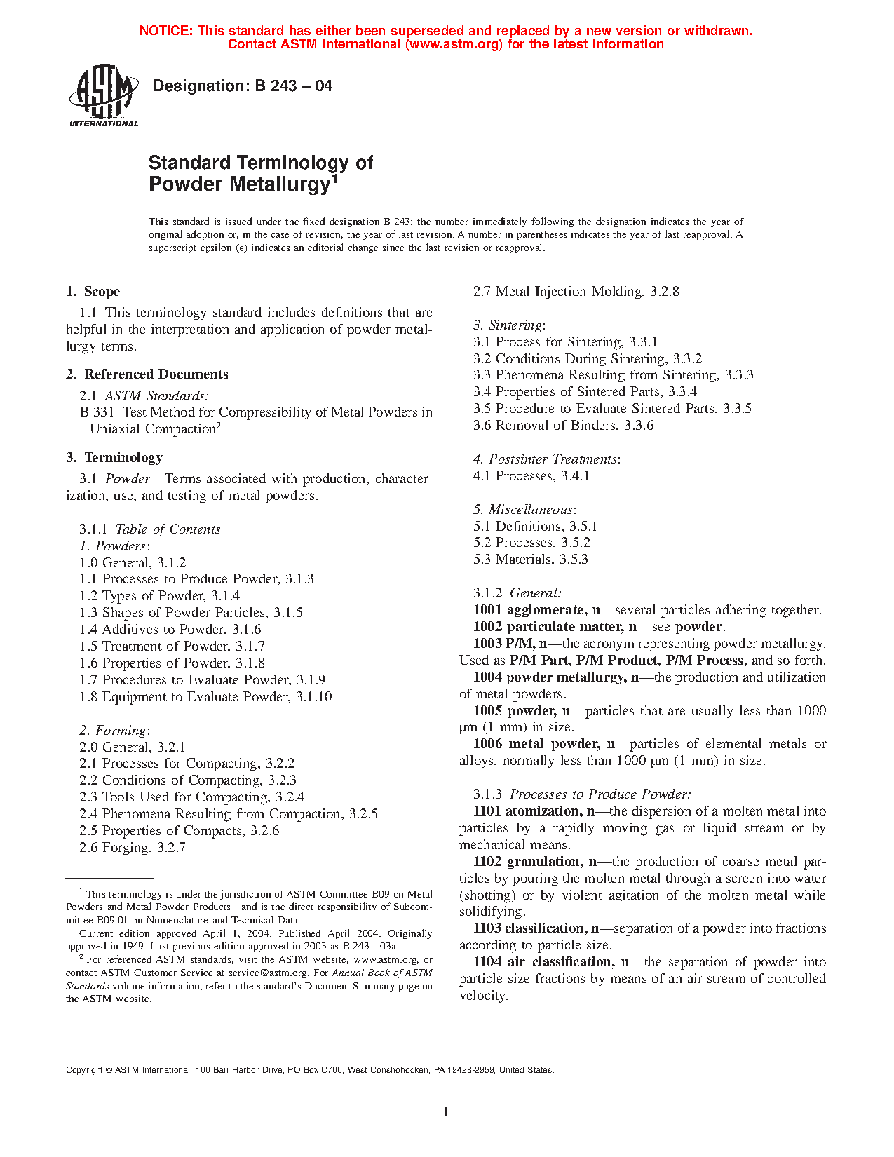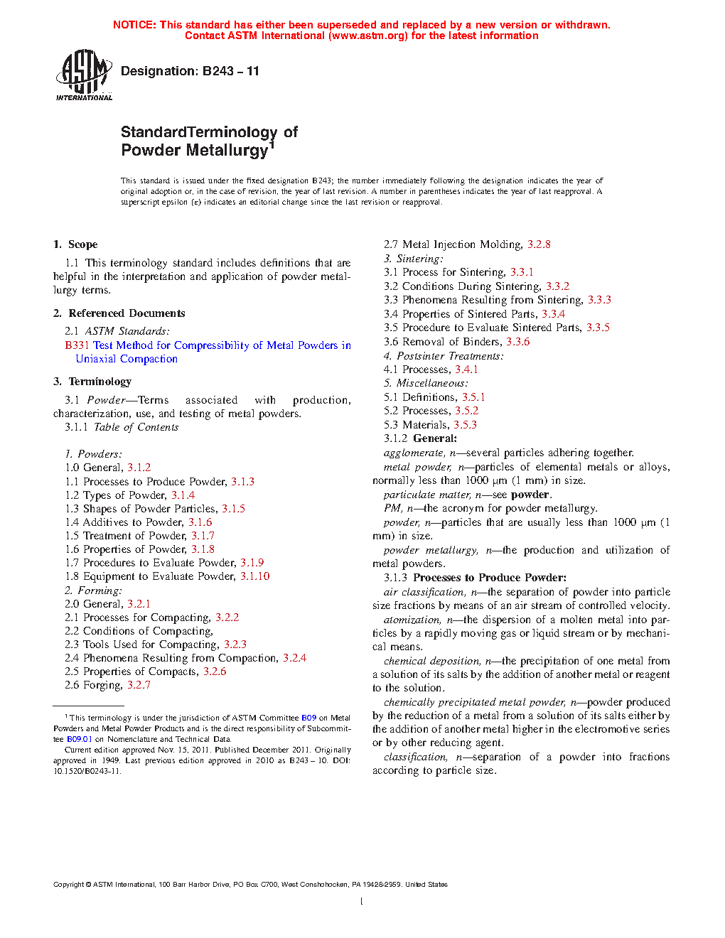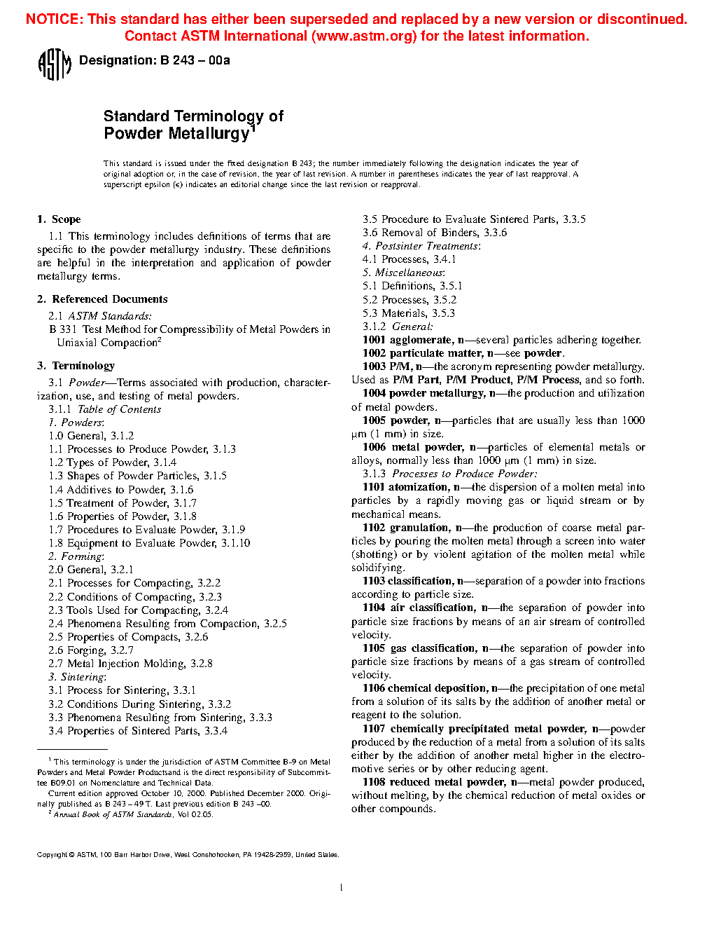 Standard Terminology of Powder Metallurgy
