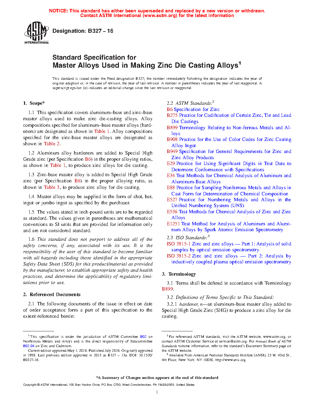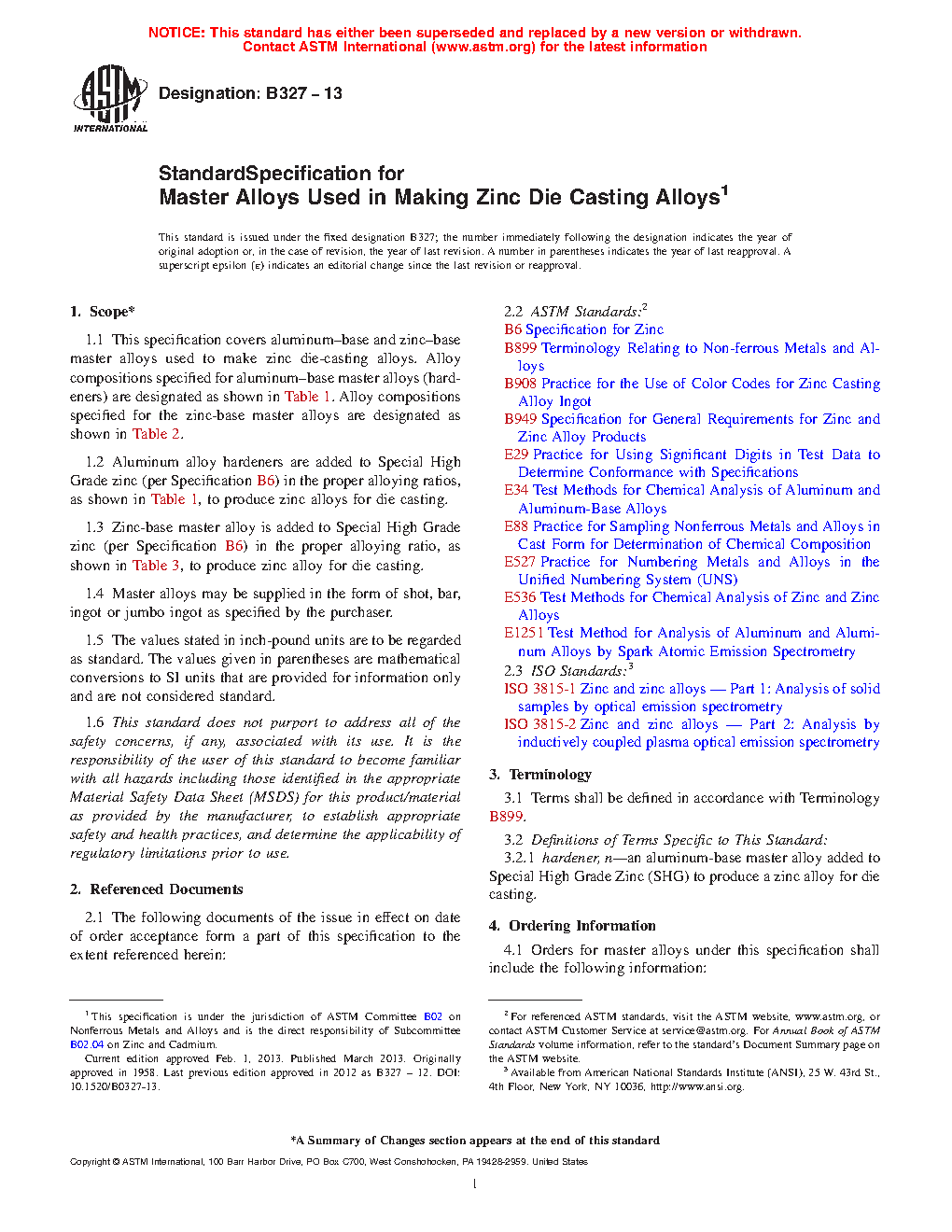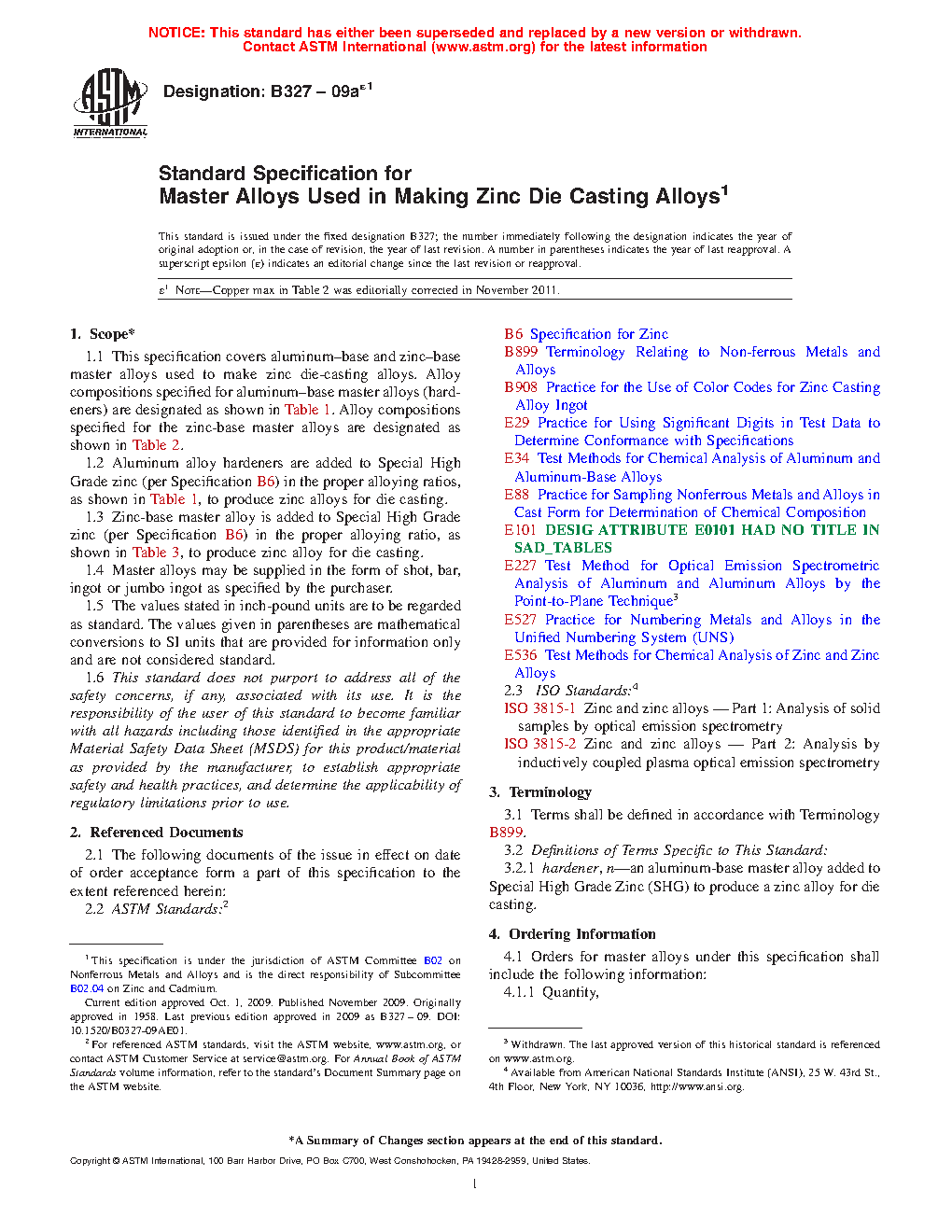 1.3 Zinc-base master alloy is added to Special High Grade zinc (per Specification B 6