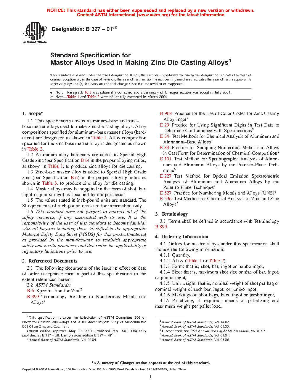 TABLE 2 Chemical and Color Code Requirements for Zinc-Base Master AlloysA,B,C