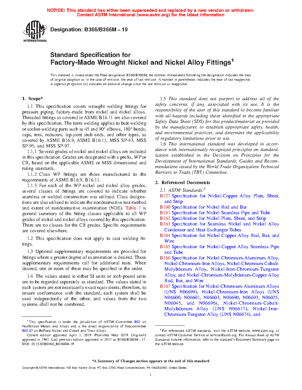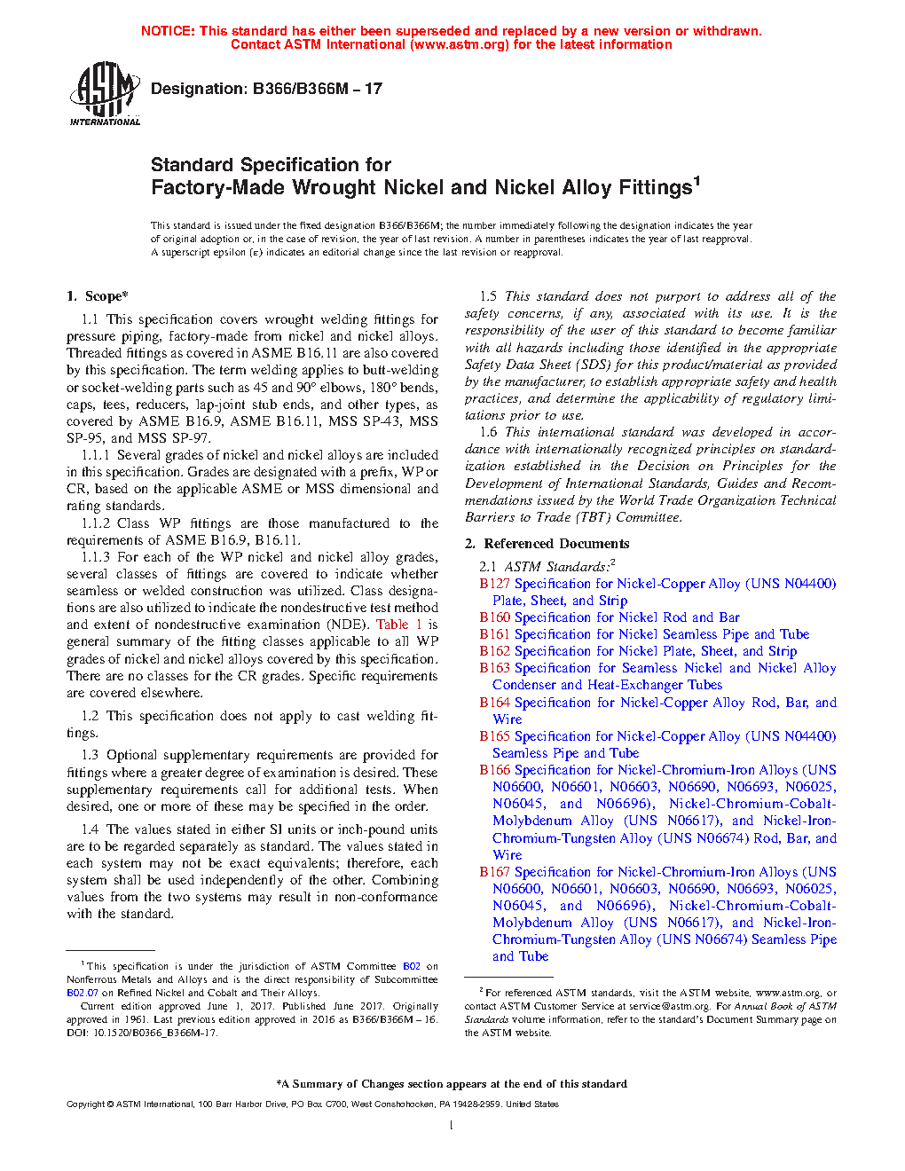 1.1.1 Several grades of nickel and nickel alloys are included in this specification. Grades are designated with a prefix, WP or CR, based on the applicable ASME or MSS dimensional and rating standards.