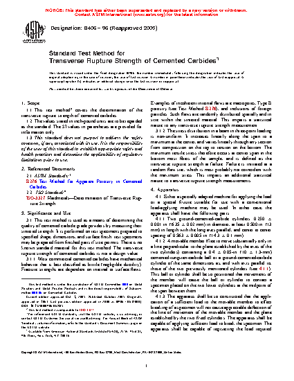 Standard Test Method for Transverse Rupture Strength of Cemented Carbides