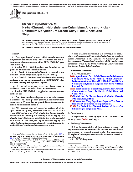 Standard Specification for Nickel-Chromium-Molybdenum-Columbium Alloy (UNS N06625) and Nickel-Chromium-Molybdenum-Silicon Alloy (UNS N06219)* Plate, Sheet, and Strip