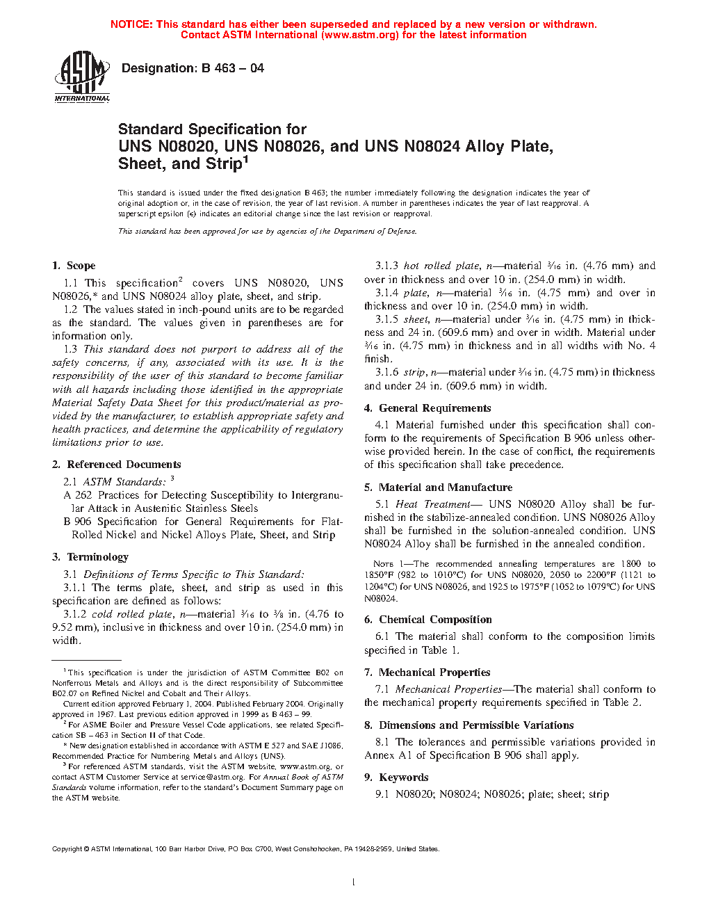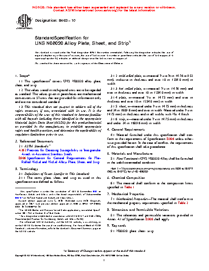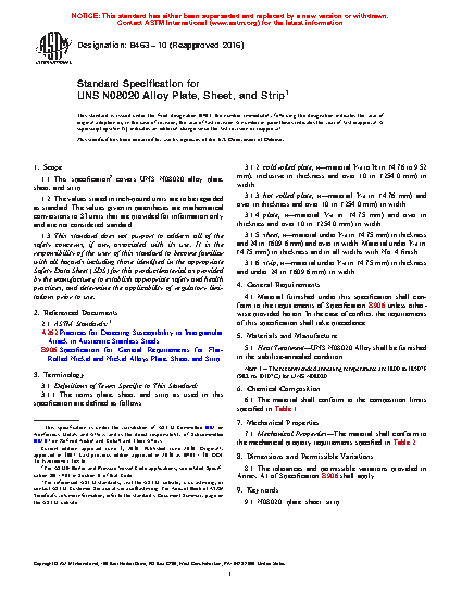 1.1 This specification covers UNS N08020, UNS N08026,* and UNS