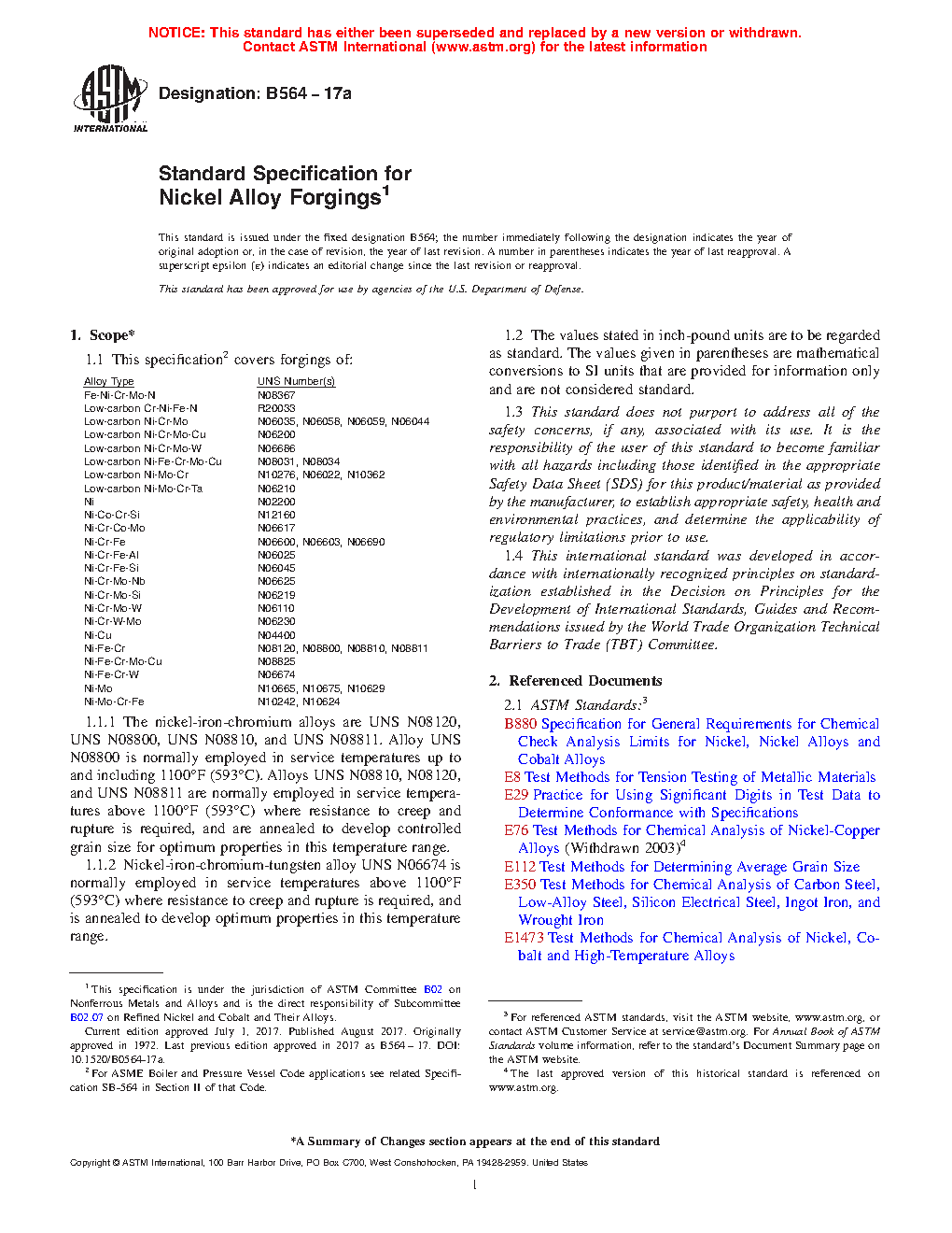 1.1 This specification2 covers forgings of: