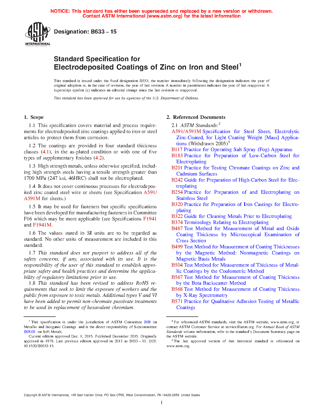 1.4 This standard has been revised to address RoHS requirements that seek to limit the exposure of workers and the public from exposure to toxic metals. Additional types have been added to permit non-chromate passivate treatments to be used in replacement of hexavalent chromium.