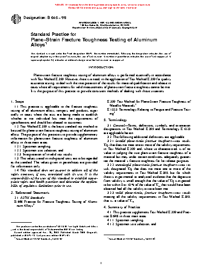 1.2 Test Method E399 is the basic test method to be used for plane-strain fracture toughness testing of aluminum alloys. The purpose of this practice is to provide supplementary information for plane-strain fracture toughness of aluminum alloys in three main areas: