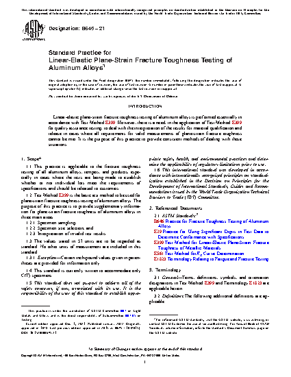 5.1 This practice for plane-strain fracture toughness testing of aluminum alloys may be used as a supplement to Test Method E399. The application of this practice is primarily intended for quality assurance and material release in cases where valid plane-strain fracture toughness data cannot be obtained per Test Method E399.