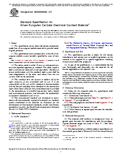 1.2 This specification covers compositions within the silver-tungsten carbide system normally specified by users of contacts.
