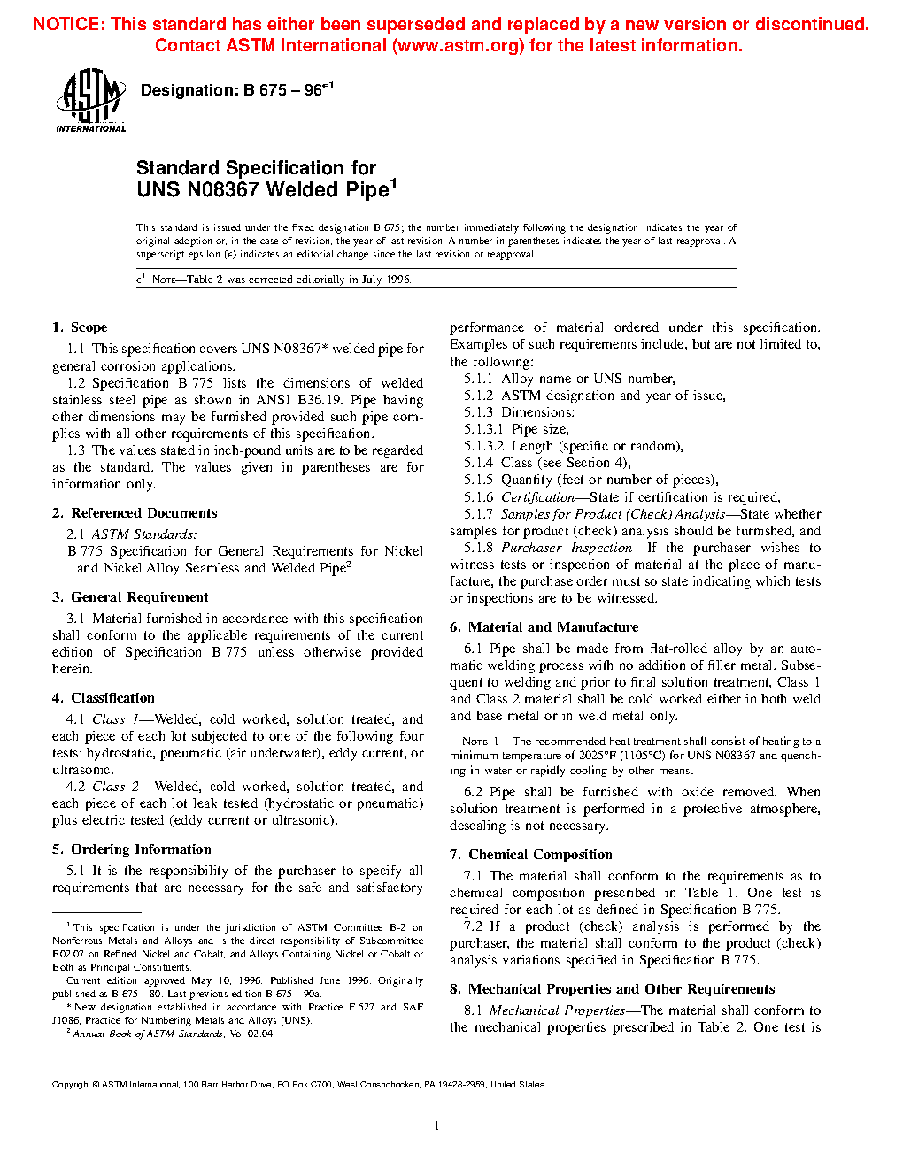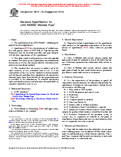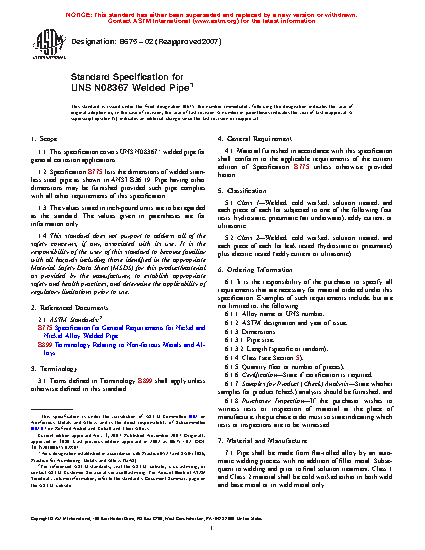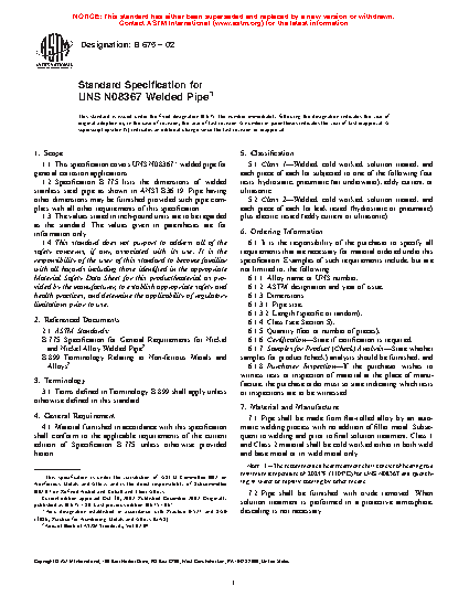 1.1 This specification covers UNS N08367* welded pipe for general corrosion applications.