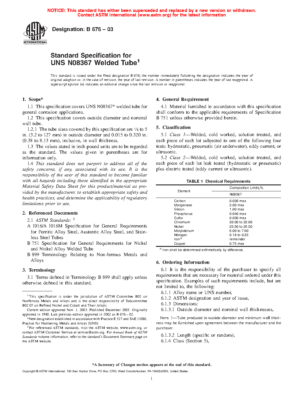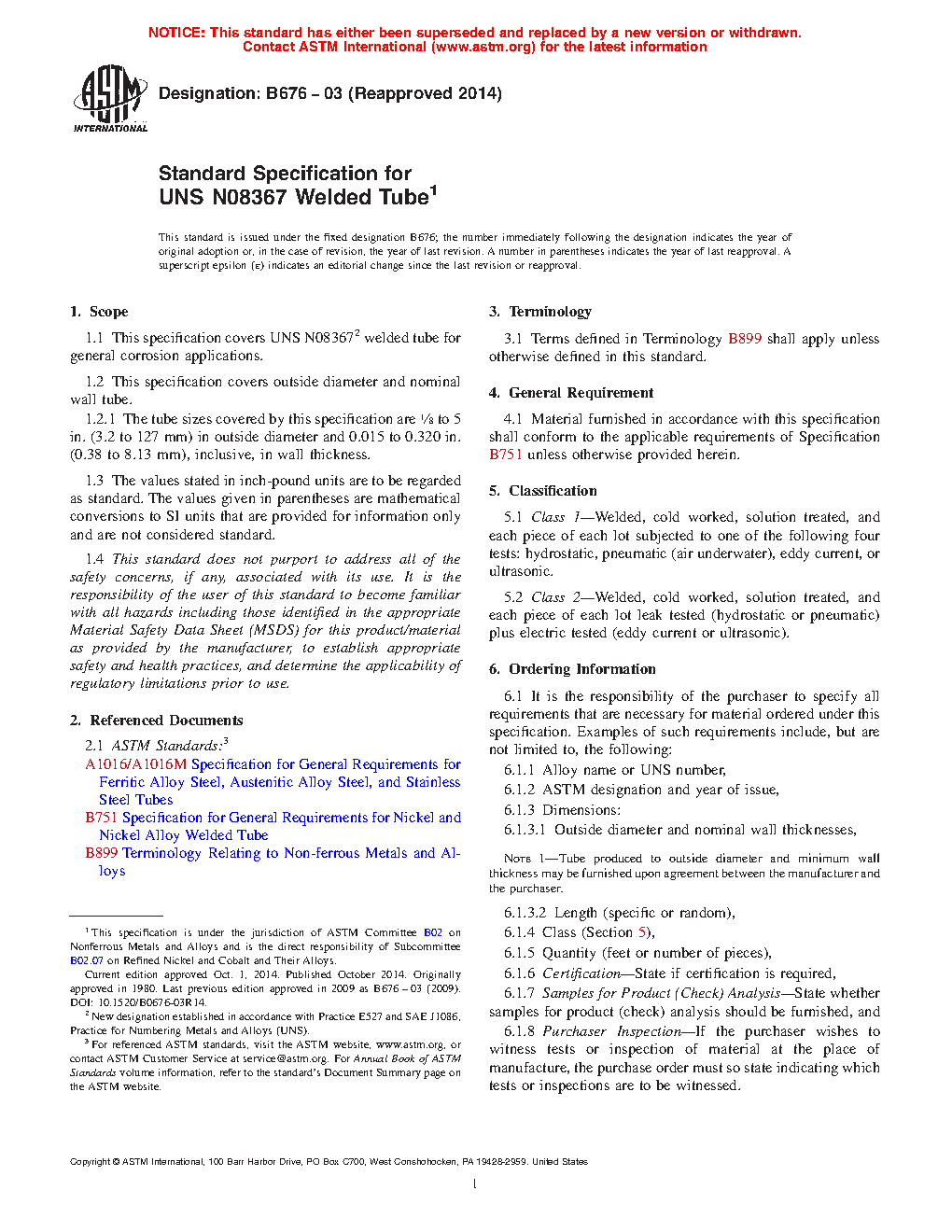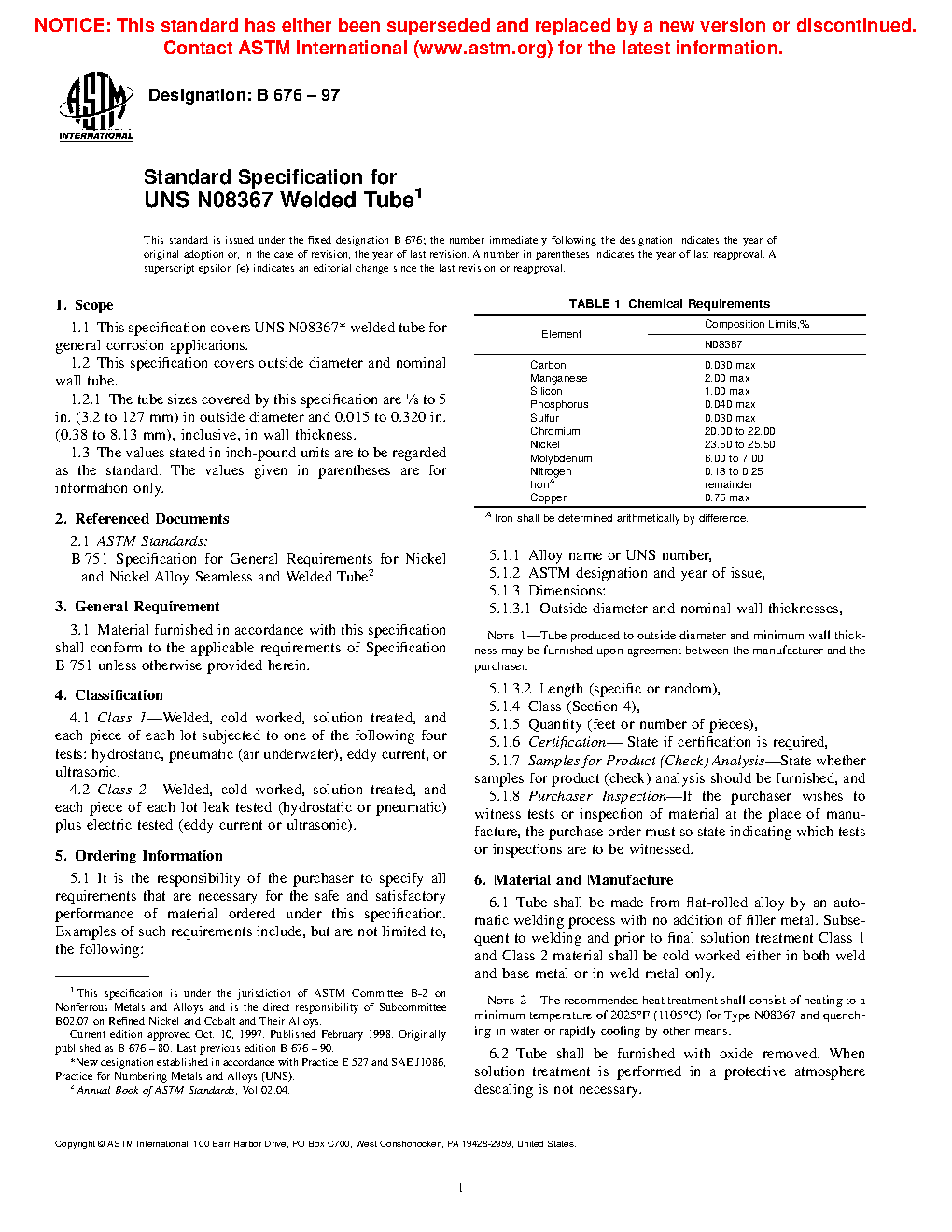 1.1 This specification covers UNS N08367 welded tube for general corrosion applications.