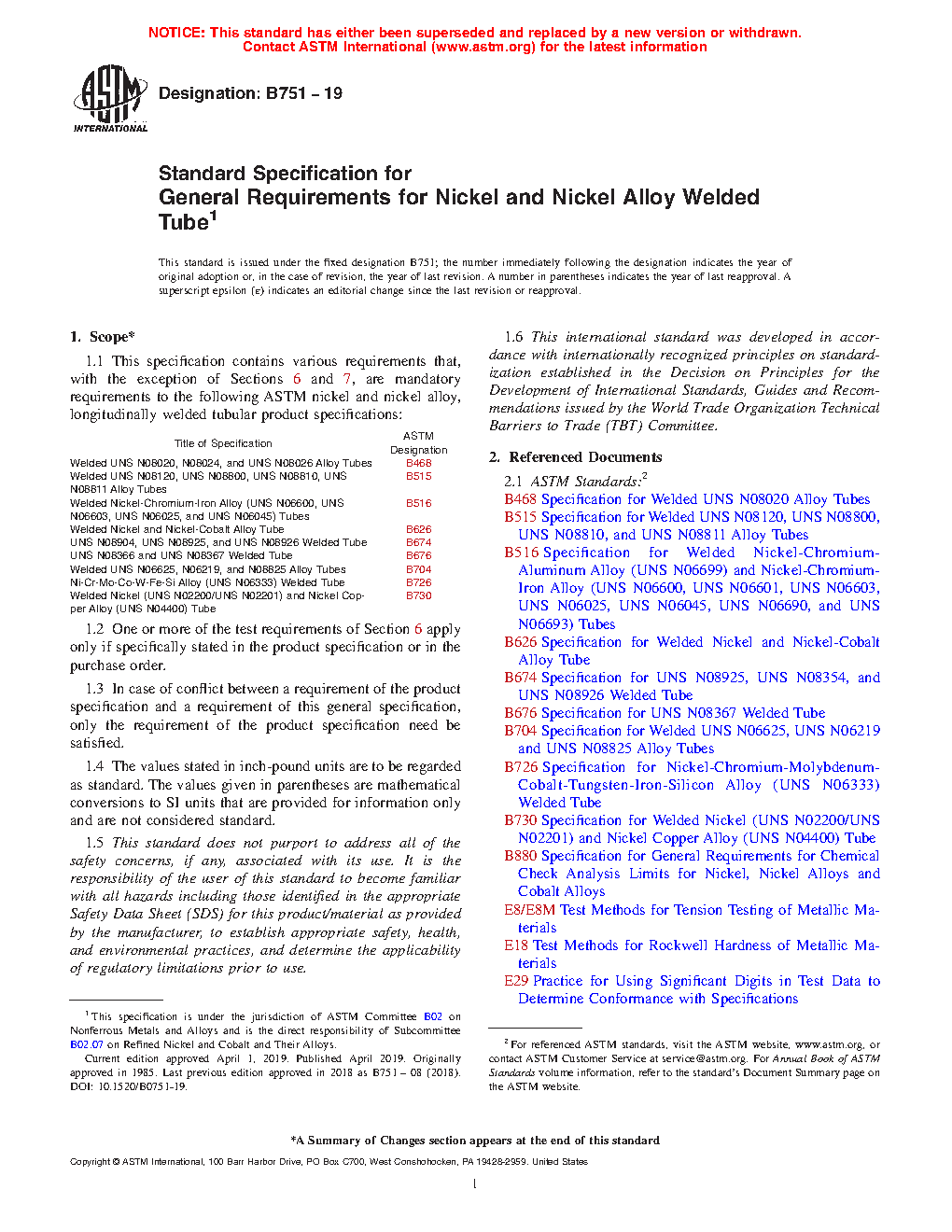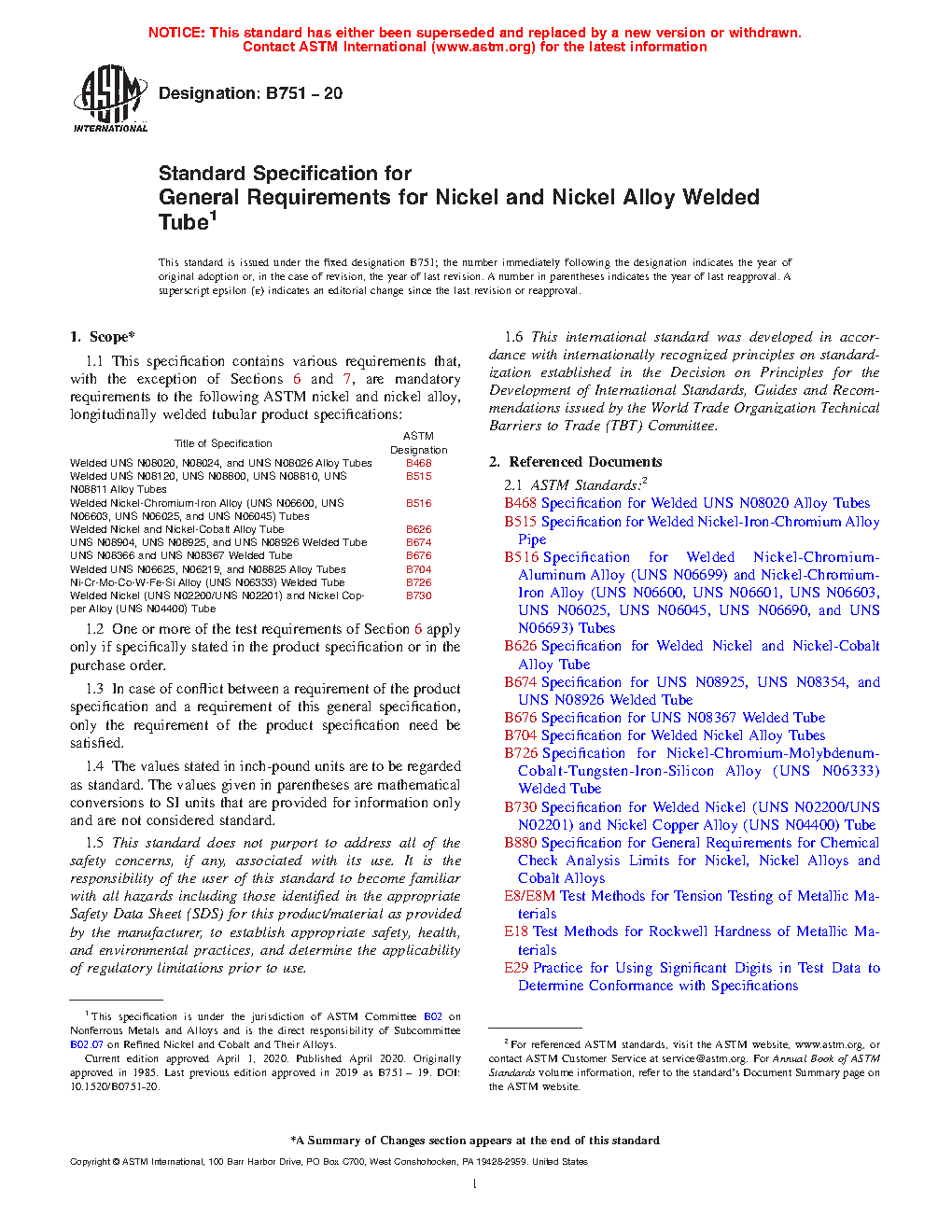 This general specification contains the mandatory requirements to the ASTM standards listed herein for longitudinally welded tubular products made from nickel and nickel alloys. In case of conflict, the requirements listed in the particular product specification takes precedence over those listed here.