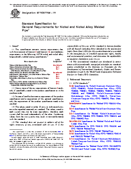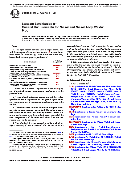 This general specification contains the mandatory requirements to the ASTM standards listed herein for longitudinally welded piping made from nickel and nickel alloys. In case of conflict, the requirements listed in the particular product specification takes precedence over those listed here.