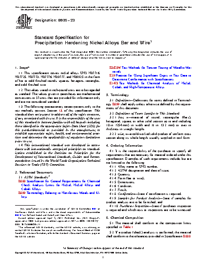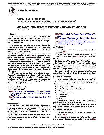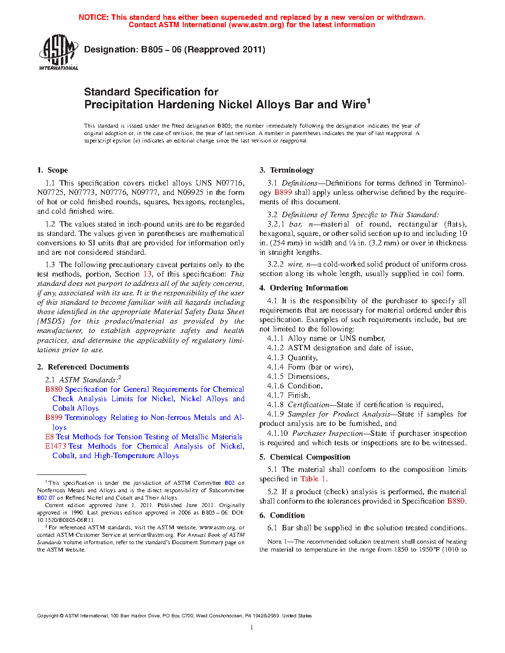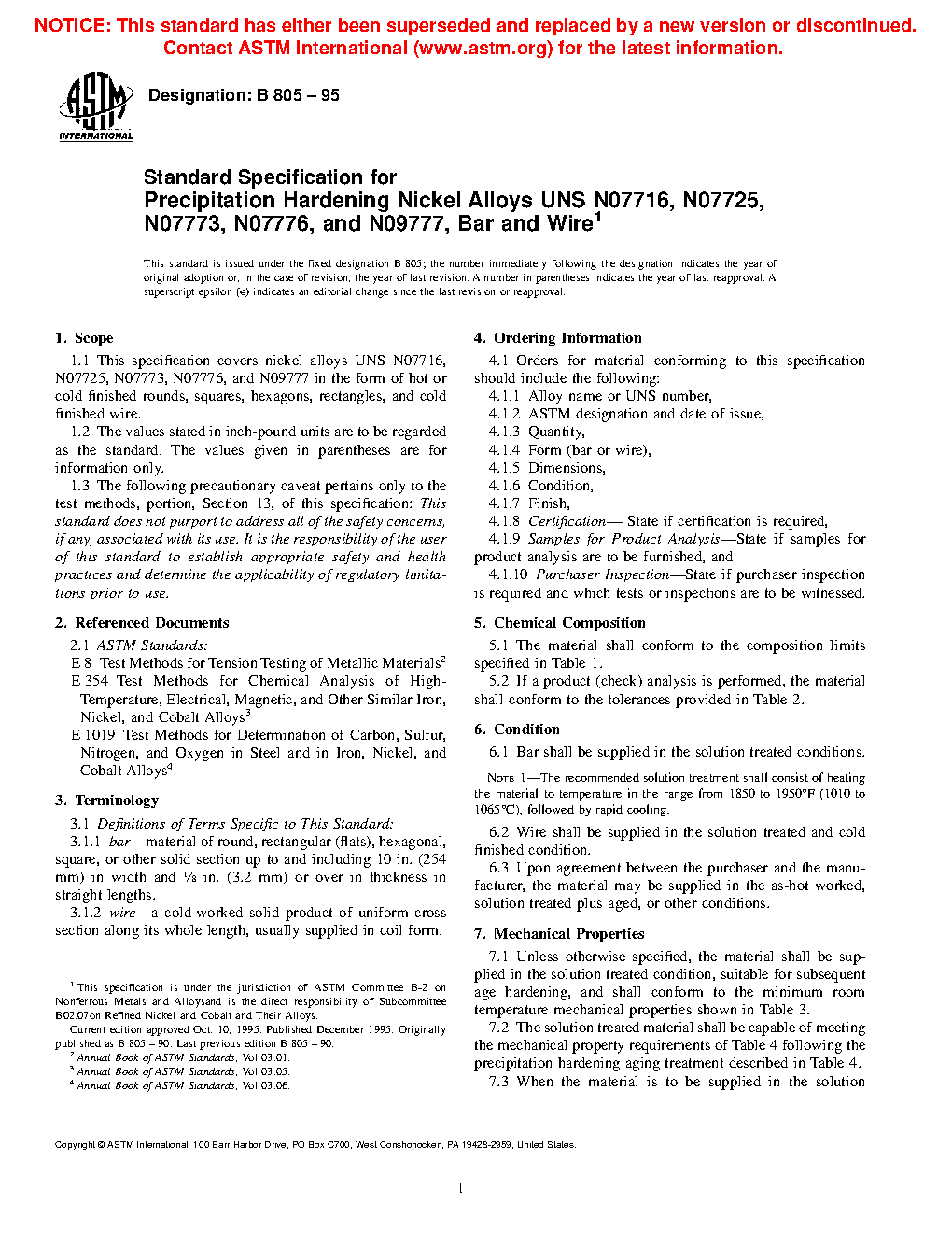 1.1 This specification covers nickel alloys UNS N07716, N07725, N07773, N07776, N09777, and N09925 in the form of hot or cold finished rounds, squares, hexagons, rectangles, and cold finished wire.