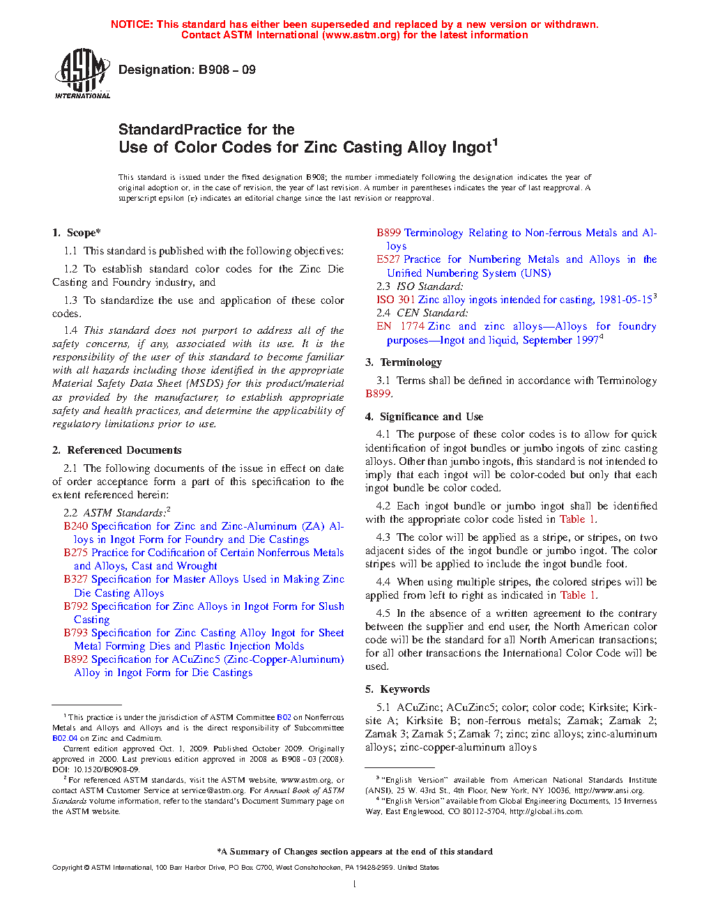 4.2 Each ingot bundle or jumbo ingot shall be identified with the appropriate color code listed in Table 1.