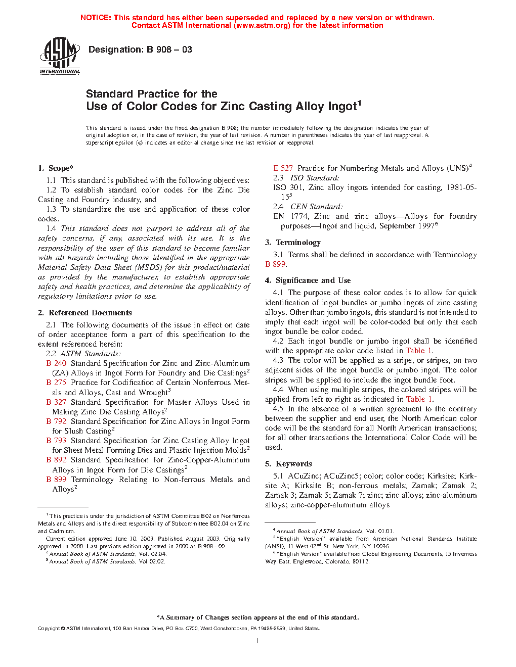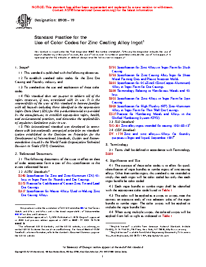 4.1 The purpose of these color codes is to allow for quick identification of ingot bundles or jumbo ingots of zinc casting alloys. Other than jumbo ingots, this standard is not intended to imply that each ingot will be color coded but only that each ingot bundle be color coded.