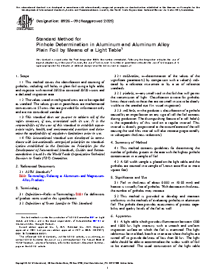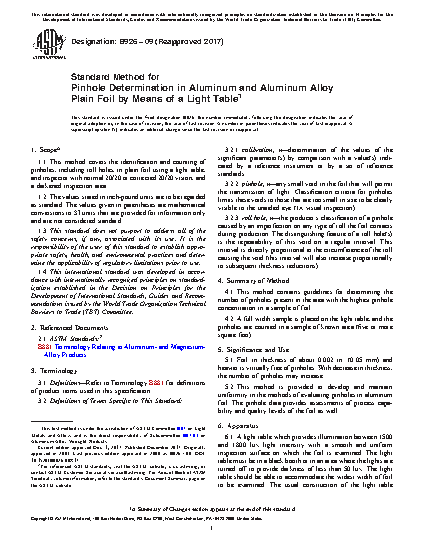 1.1 This method covers the identification and counting of pinholes, including roll holes, in plain foil using a light table, and inspector with normal 20/20 or corrected 20/20 vision, and a darkened inspection area.