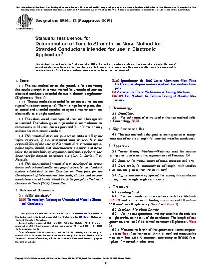 1.1 This test method covers the procedure for determining the tensile strength by a mass method for uninsulated stranded electrical conductors intended for use in electronic application (Explanatory Note 1).