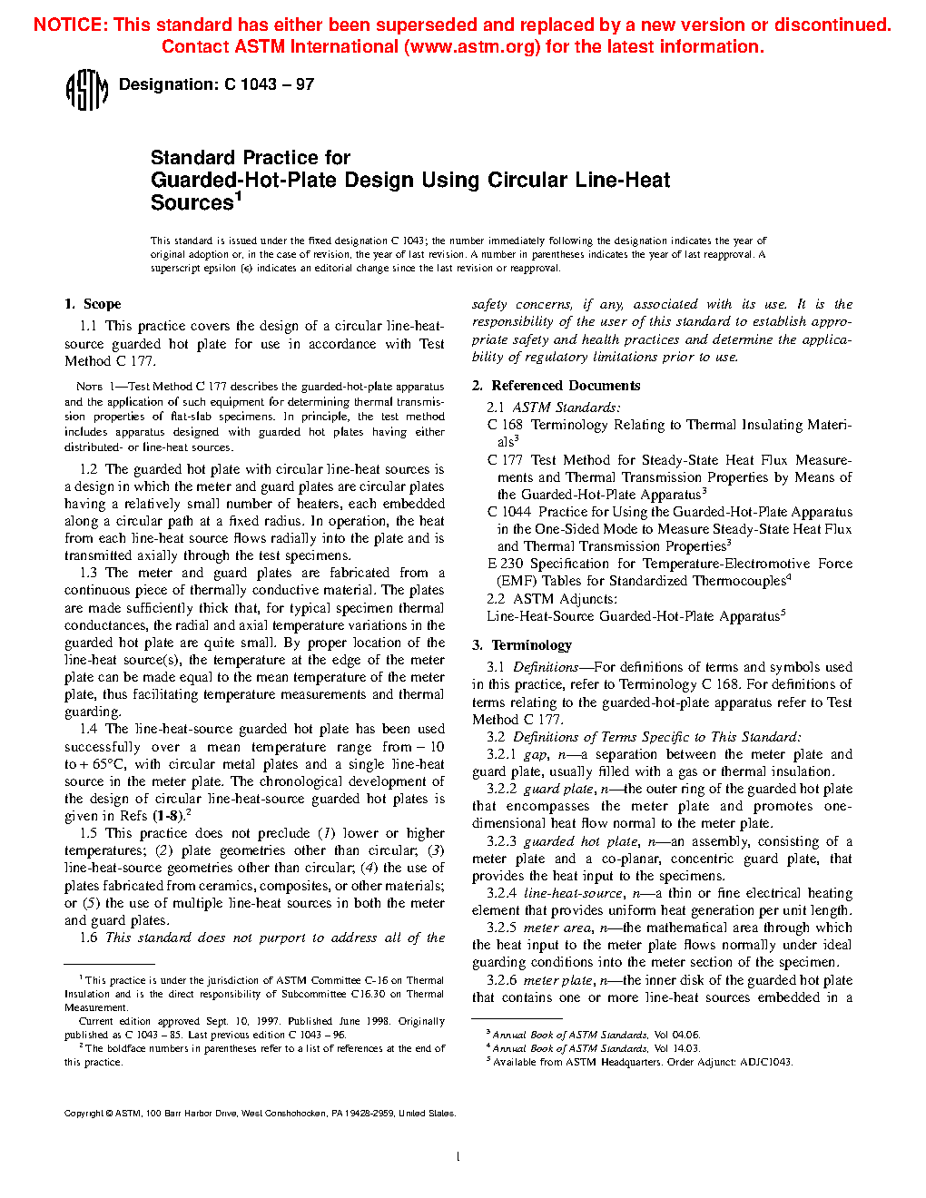Note 1: Test Method C177 describes the guarded-hot-plate apparatus and the application of such equipment for determining thermal transmission properties of flat-slab specimens. In principle, the test method includes apparatus designed with guarded hot plates having either distributed- or line-heat sources.