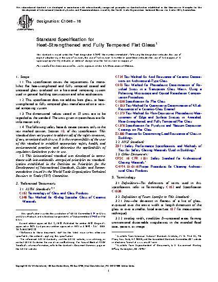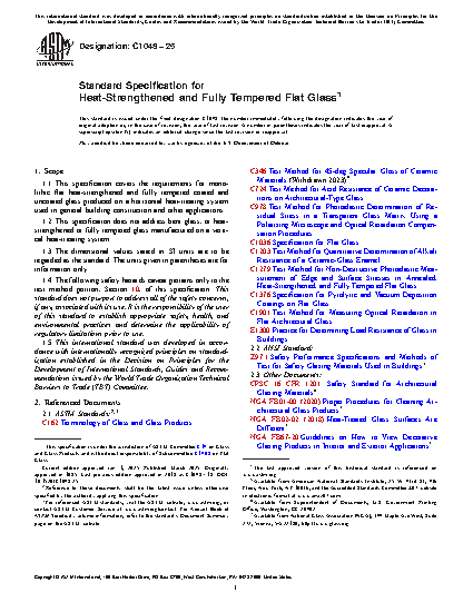 1.1 This specification covers the requirements for flat heat-strengthened and flat fully tempered coated and uncoated glass used in general building construction.