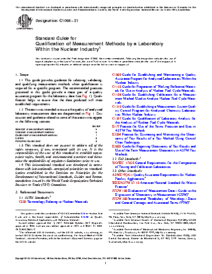 1.1 This guide provides guidance for selecting, validating, and qualifying measurement methods when qualification is required for a specific program. The recommended practices presented in this guide provide a major part of a quality assurance program for the laboratory data (see ). Qualification helps to assure that the data produced will meet established requirements.